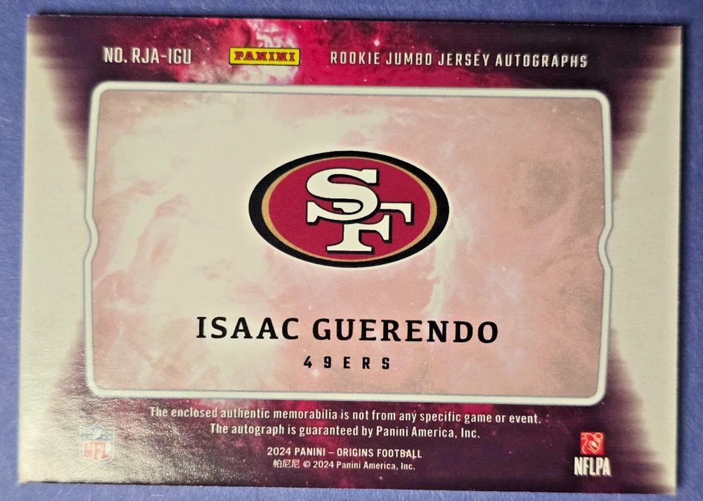 Isaac Gueredo Rookie Auto Patch RJA-IGU San Francisco 49ers RC. Condition is Ungraded. Shipped with USPS Ground Advantage.