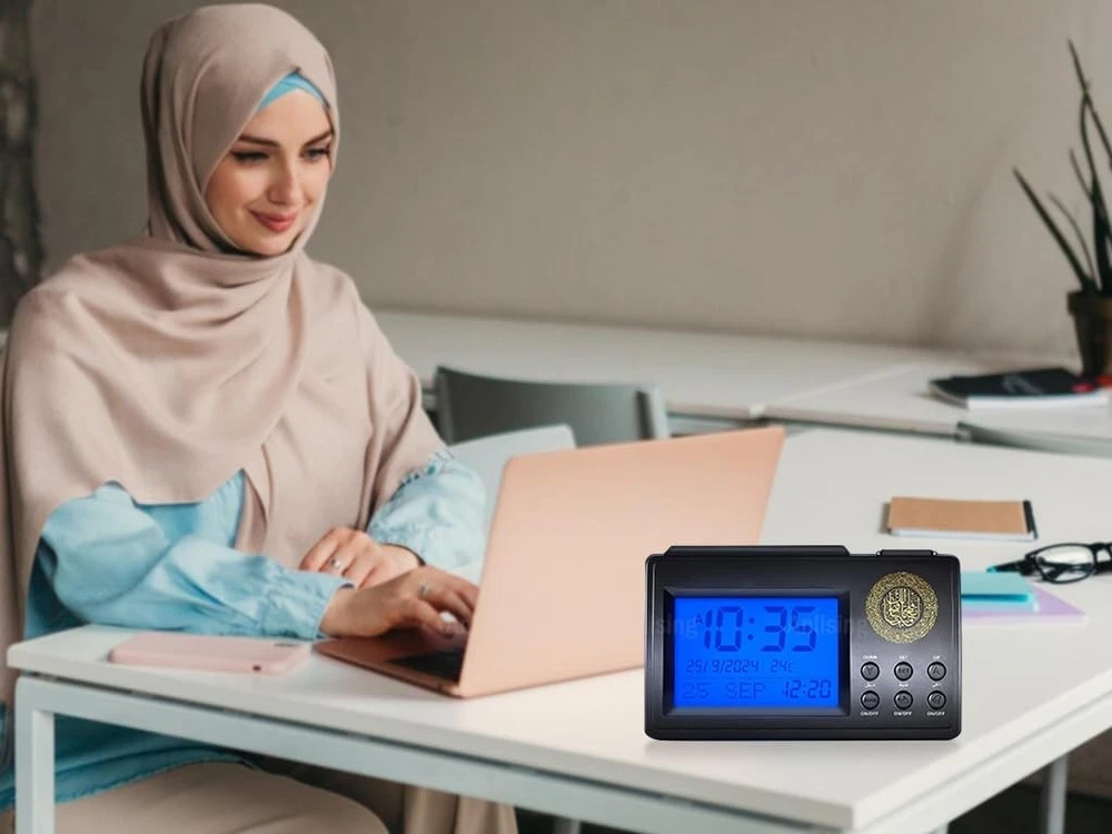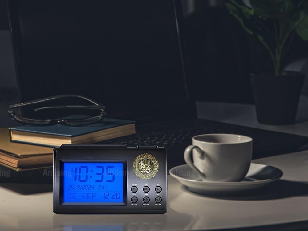 This Azan Alarm Clock is a must-have for any Muslim household! It’s incredibly accurate, displaying both Hijri and Gregorian dates, plus world time. The 1500-city prayer times ensure you never miss Salah, and the Makkah background music adds a spiritual touch. The customizable alarms, including one-time and daily reminders, make it super convenient. Sleek design, easy to use, and packed with features—highly recommend for keeping track of prayers and time!