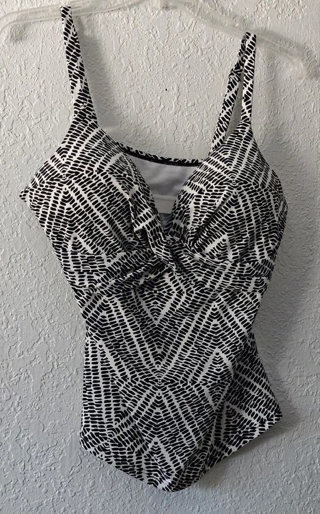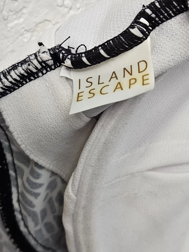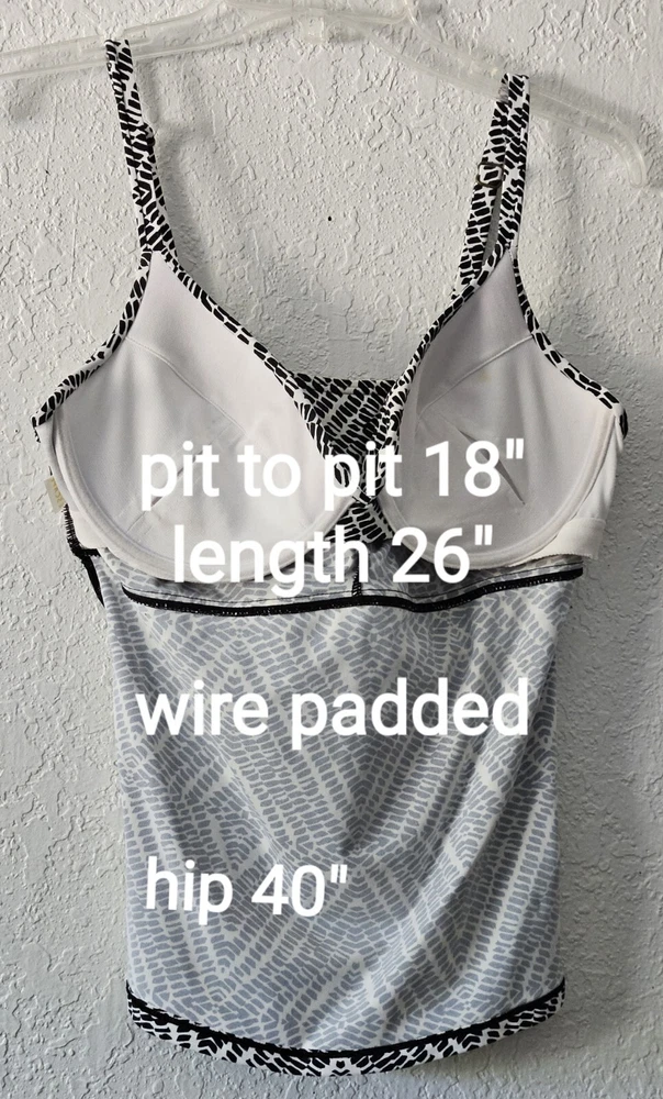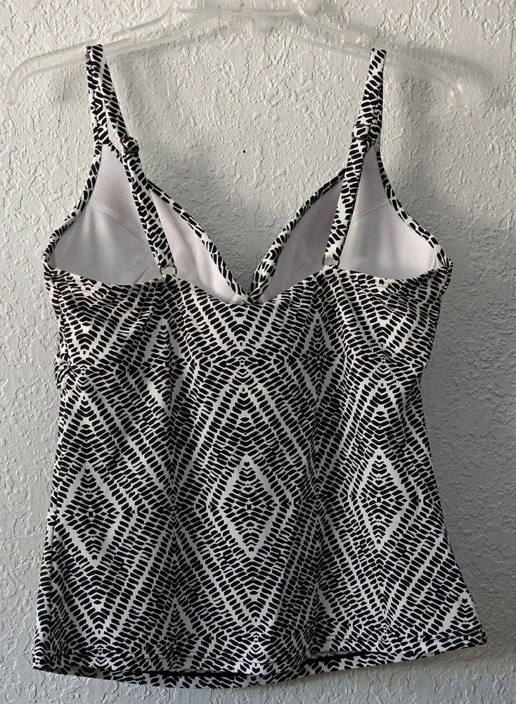 Island Escape Tankini White W Black Geo Design Underwire Padded Adjustable.... Condition is Pre-owned. Shipped with USPS Ground Advantage.