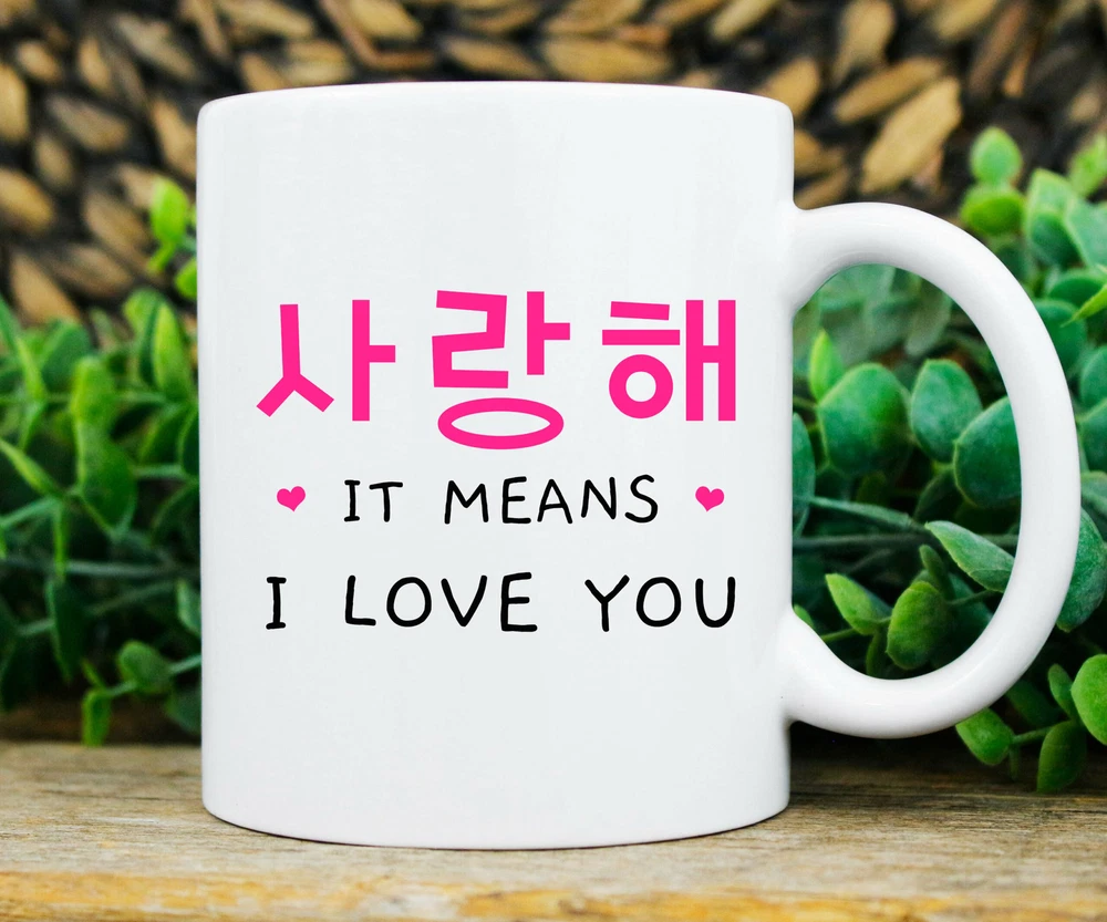 It Means I Love You Mug Funny South Korea Coffee Cup For K Pop And K Drama Fans Product Details.. This high quality 11oz. ceramic white mug has a premium hard coat that provides crisp and vibrant color reproduction sure to last for years. Perfect for all hot & cold beverages. The highest quality printing possible is used. It will never fade no matter how many times you wash it. Material: 100% Ceramic. Print both sides. Dishwasher and Microwave Safe. High Gloss + Premium White Finish. Printed in the U.S.A. Personalized & Custom. We support personalized and custom mug to add custom, when placing an order, you can add notes to the "order note" in shipping address section. Also you can contact us directly via message. Shipping Info. Ready to ship in 1 to 2 business days, All products are made-to-order and proudly printed in the United States. Shipped by USPS and DHL, You will receive your order in 5-7 days. Replace & Refund. All products are defective during shipping broken, chipped will be replaced free of charge. You are not satisfied with the product, we will refund 100% money to you. If any other issues arise, please do not hesitate to message, we would be more than happy to assist you.