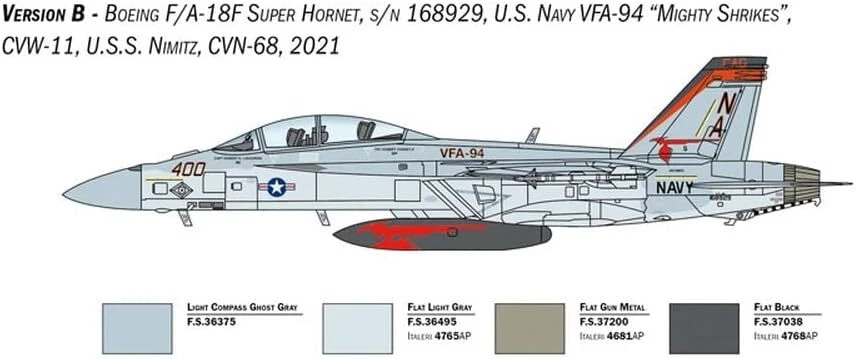Further Details Title: Italeri -2823 F/A-18F Super Hornet US Navy Special Colors, 1:48 Scale, Model Kit, Plastic Modeling, IT2823 Condition: New Description: SUPER DECALS SHEET FOR 4 VERSIONS - COLOR INSTRUCTION SHEET FIGURE NOT INCLUDED The Boeing F/A-18F Super Hornet is a modern twin-engine, carrier-capable, single-seat fighter directly derived from the original design of the McDonnell Douglas F/A-18 Hornet. Larger and heavier than its predecessor, it is characterized by significantly improved flight and combat performance. Noticeable evolutionary design changes can best be seen in the revised wing-shape which is able to ensure maximum performance, particularly in terms of maneuverability. Additional design improvements can also be seen in the newer intake ramps for the engines, and also in the enhanced tail design. The aircraft originally entered service with the United States Navy in the early 2000’s to replace the F-14 Tomcat, with the primary role of fleet air defense. Deployed with an increased mission range and the adoption of improved avionic systems, it is one of the more effective carrier-based fighters. It is armed with a 20mm M61 internal gun and can carry air-to-air missiles mounted on its under-wing hard points. The two-seater F / A-18F Super Hornet was designed and developed from its earlier single-seat version. The aircraft demonstrated a high level of operational flexibility including fleet air defense, ground attack, close support and interdiction roles. Type: Aircraft Brand: Italeri Color: Navy Material: Plastic Release Date: 10/08/2022 Age Level: 14 years and up Dimensions: 38.1 x 1 x 1 cm; 480 Grams Number of Pieces: 1 Item Length: 381mm Item Width: 10mm Item Height: 10mm MPN: IT2823 Item Weight: 480 gg Theme: Modern Assembly Status: Yes Scale: 1:48 Includes Super Decals for 4 US versions, Color Instructions Special Colors US NAVY Skill: 3 Dim. Model: 38 cm. / Dim. Box: 37.3 x 24.1 x 6 cm. Made in Italy Missing Information? Please contact us if any details are missing and where possible we will add the information to our listing.