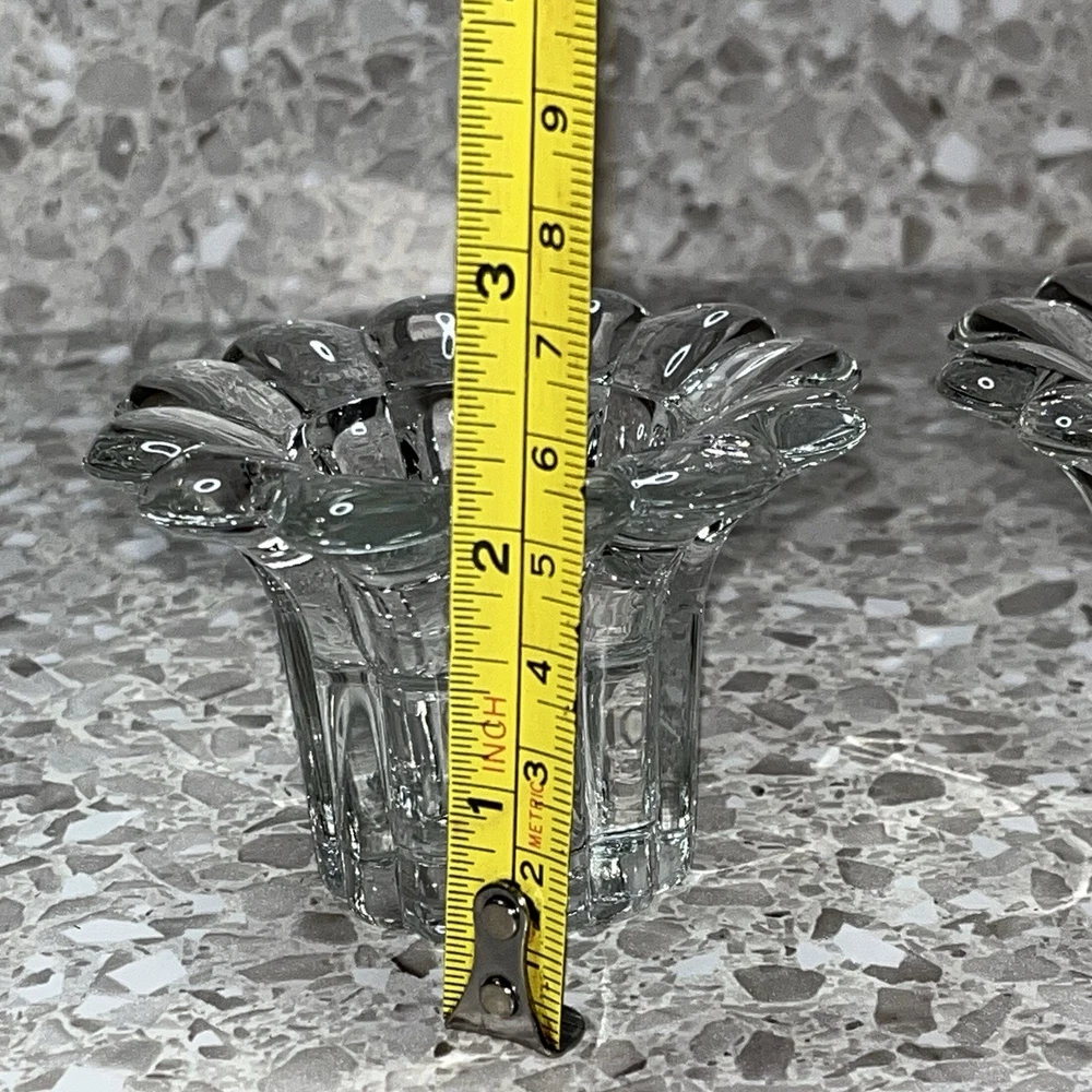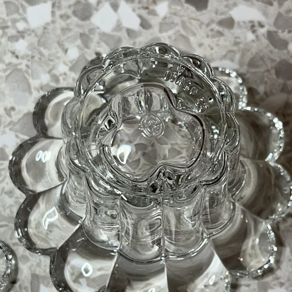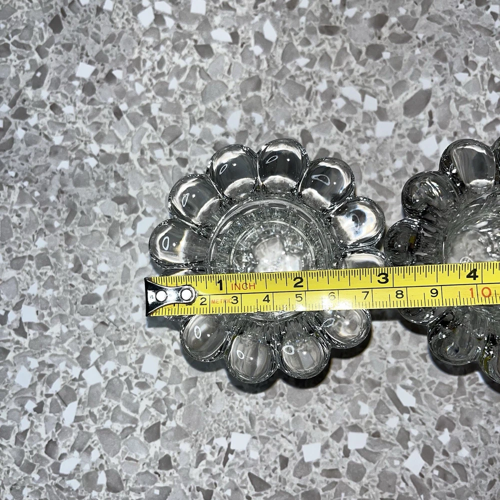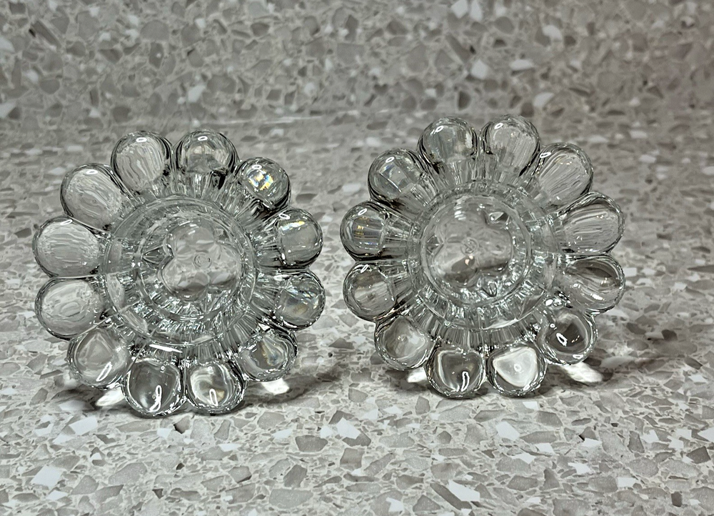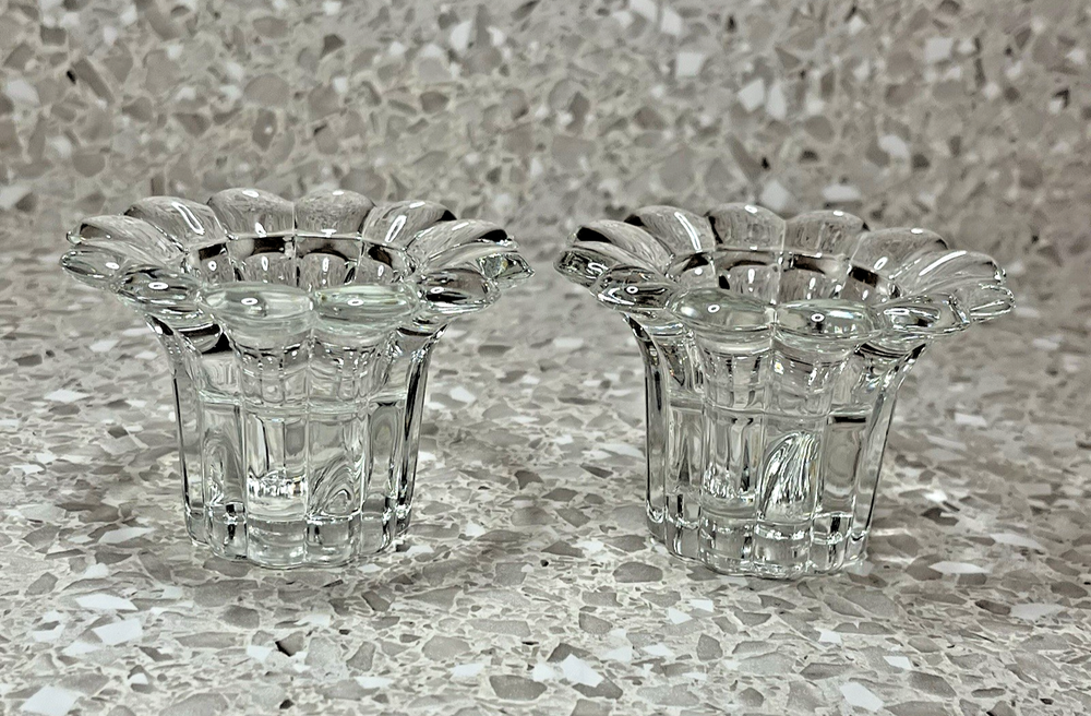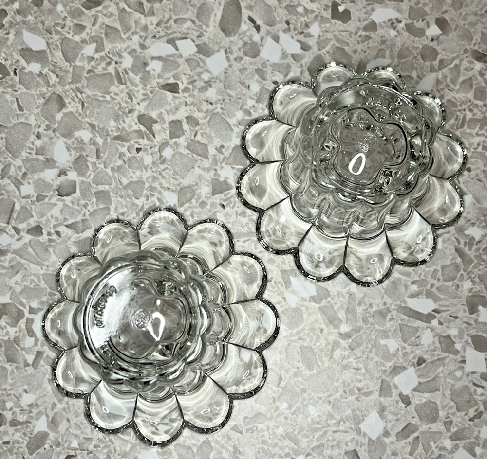 Clear Glass Candle Holders Tealight Taper Flower Shape Made in Italy 2" Set of 2