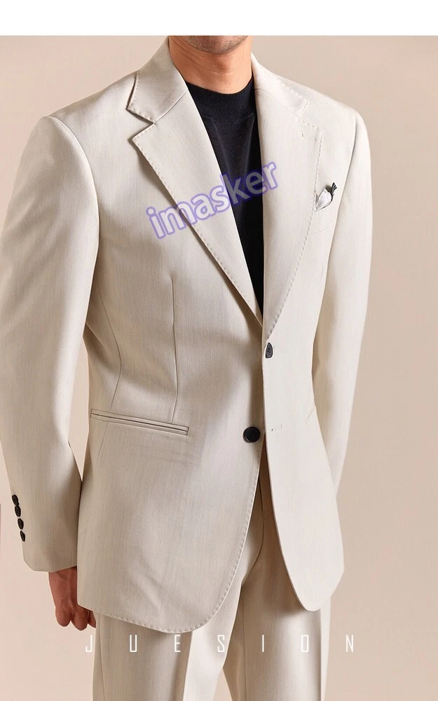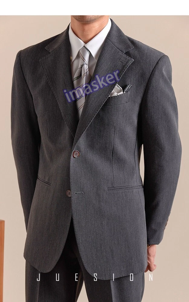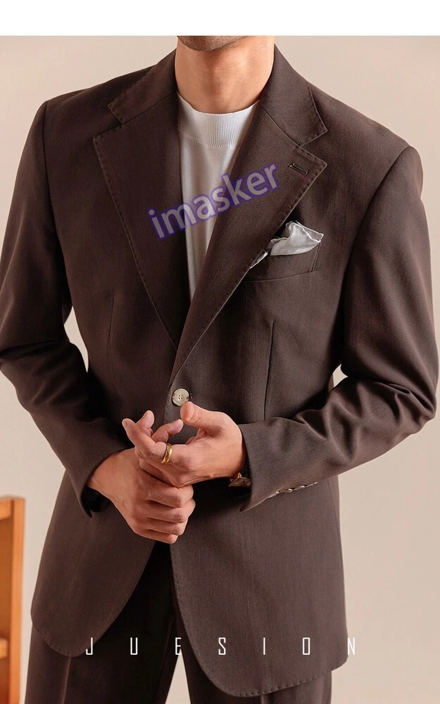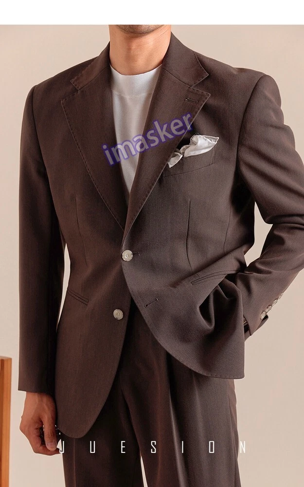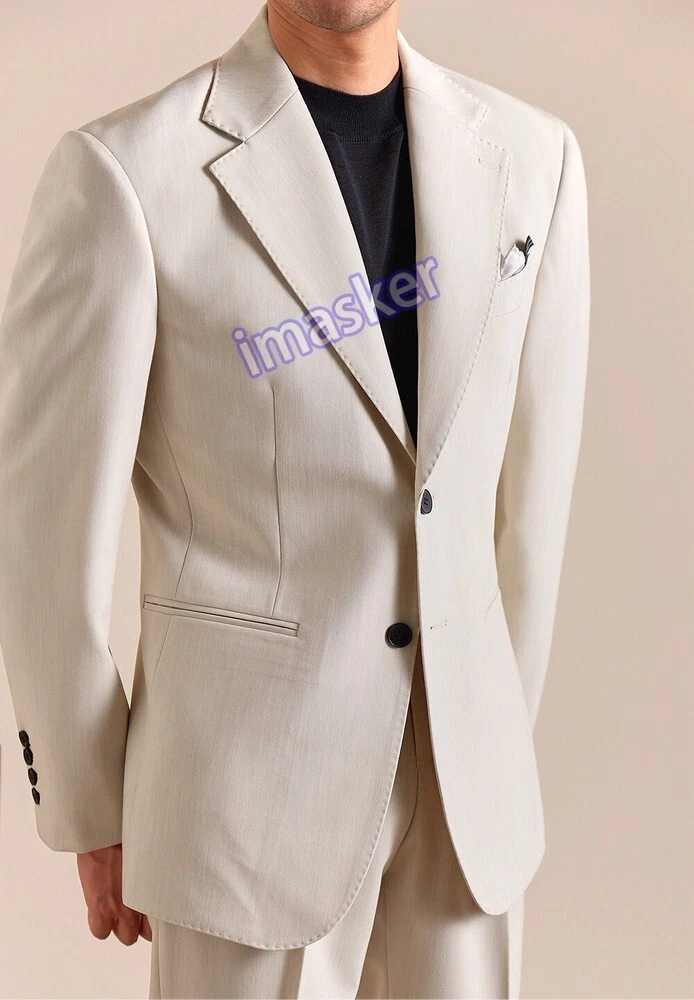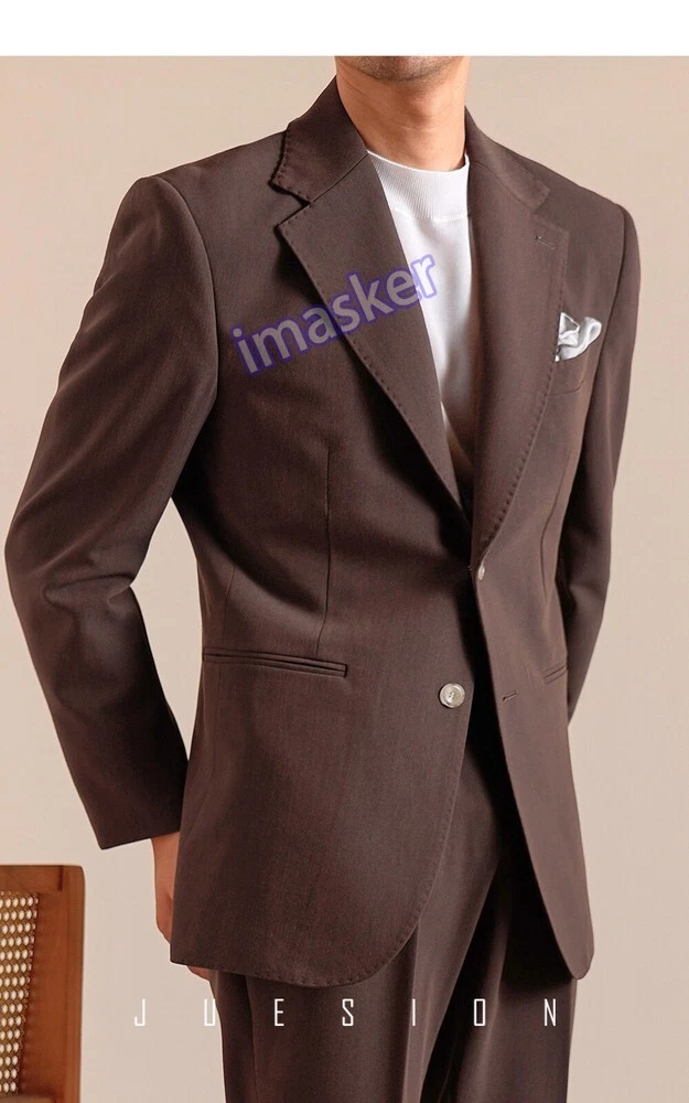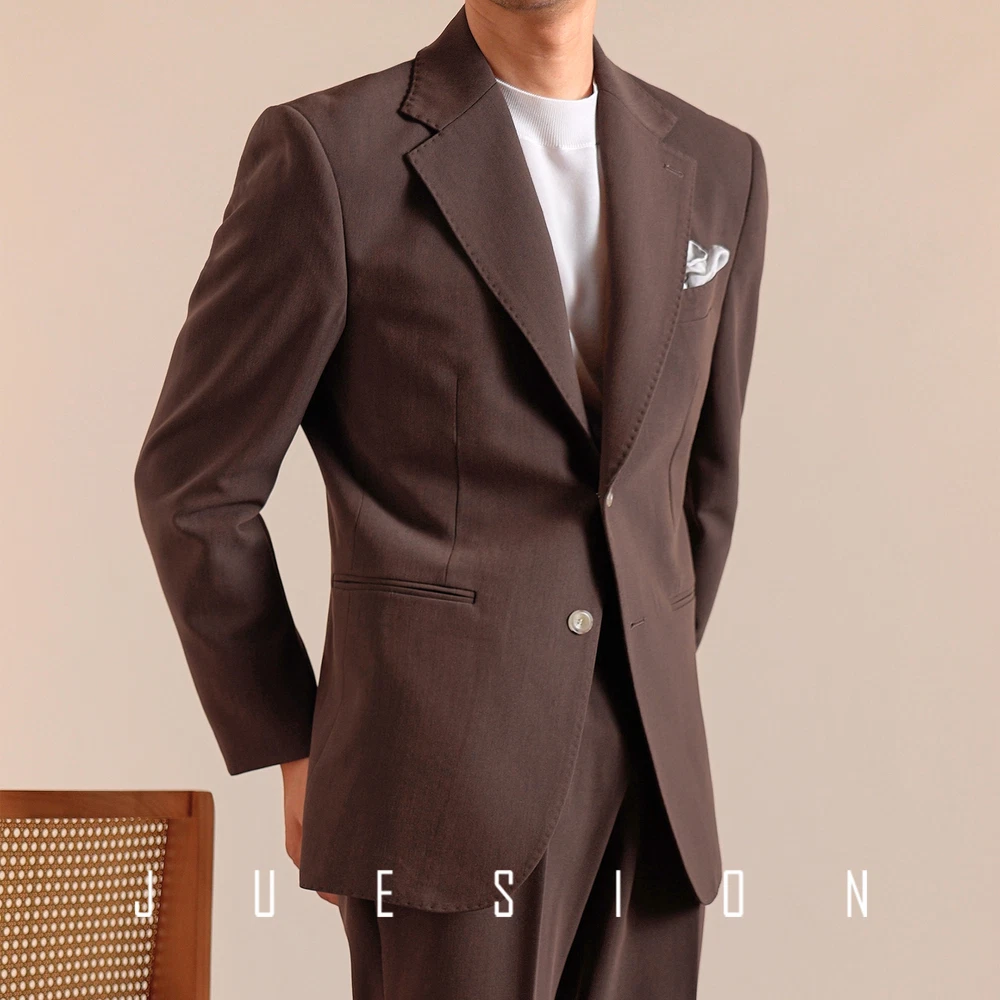 Italian Men's Naples Business Suit Two-Button Blazer for Wedding & Party