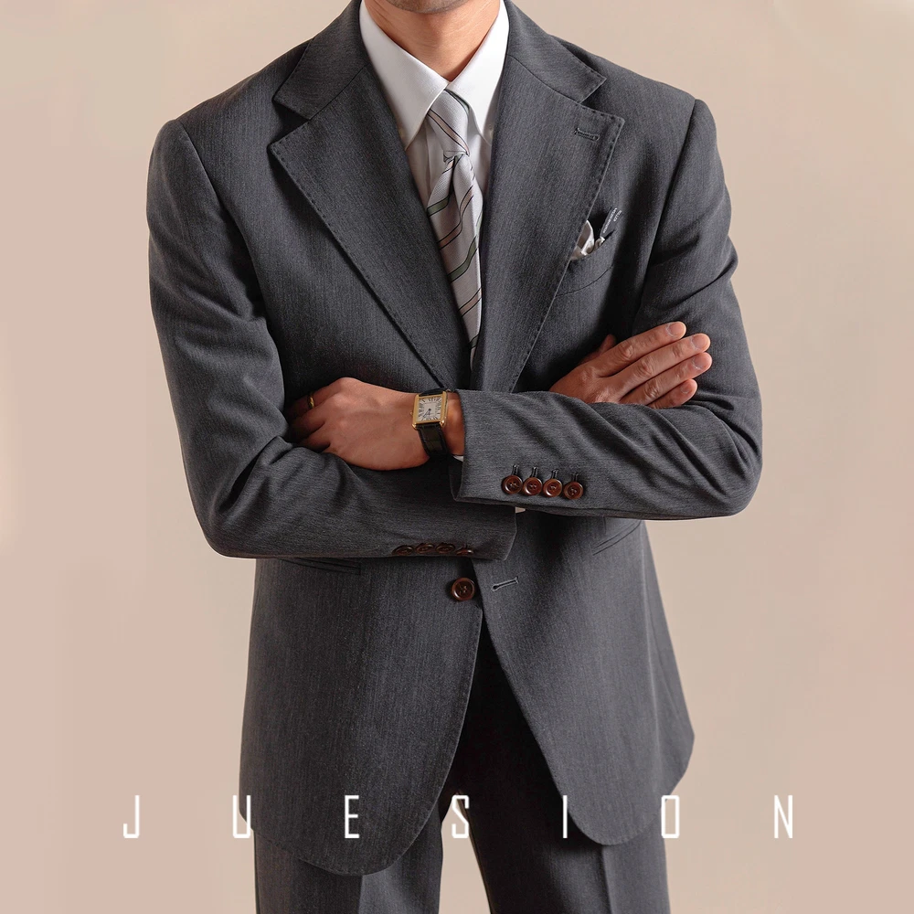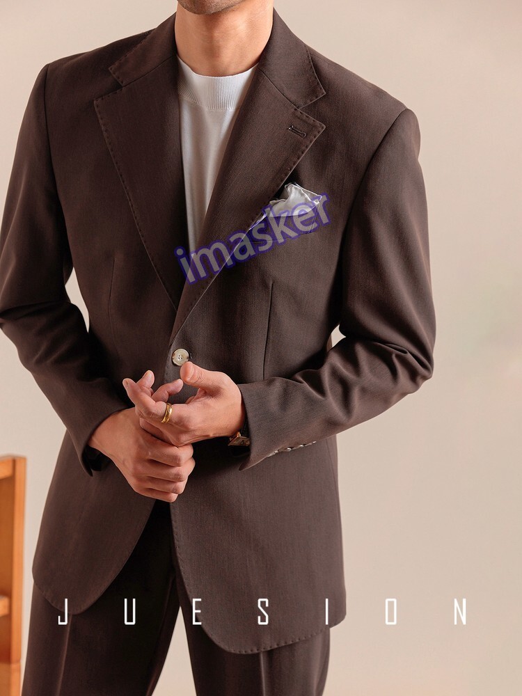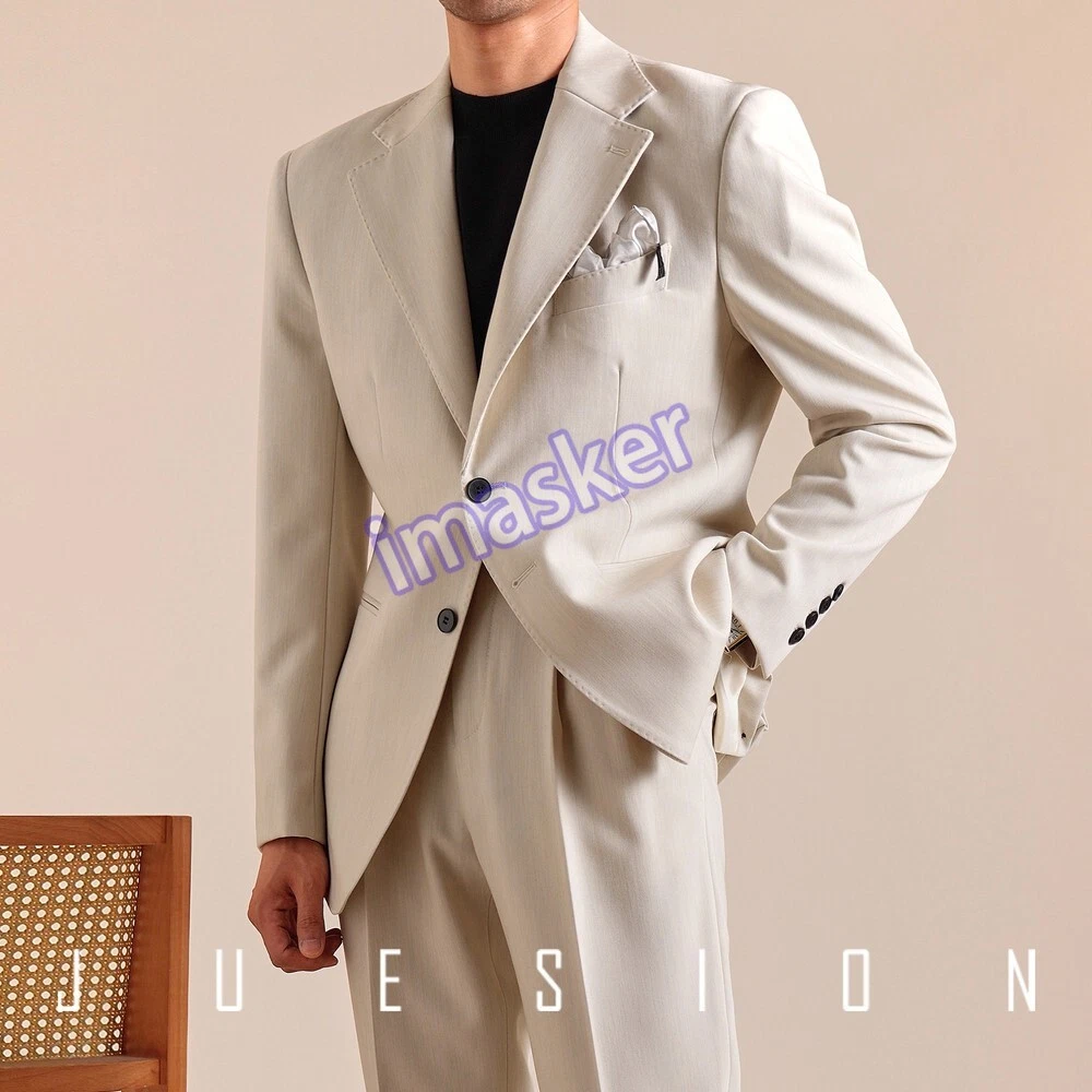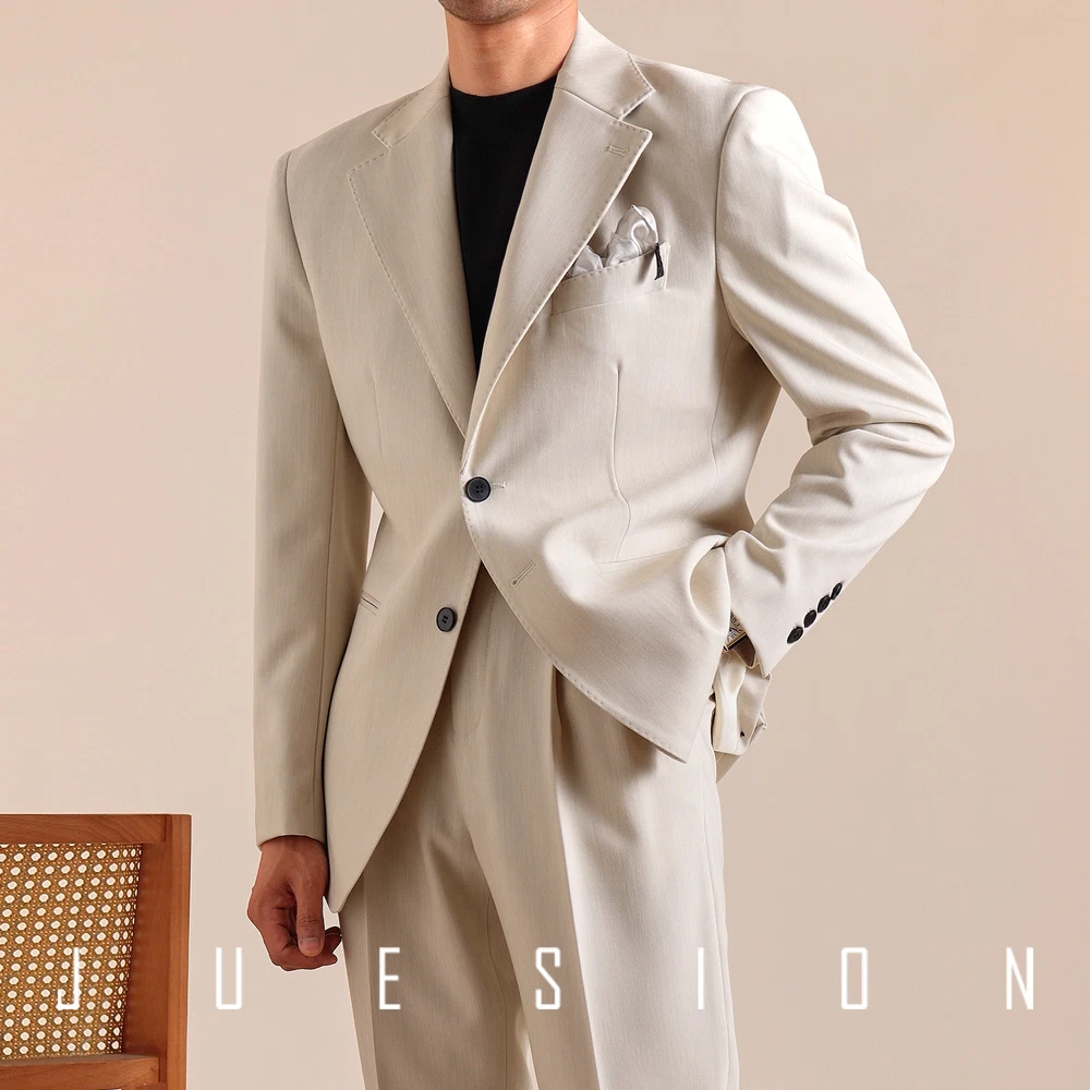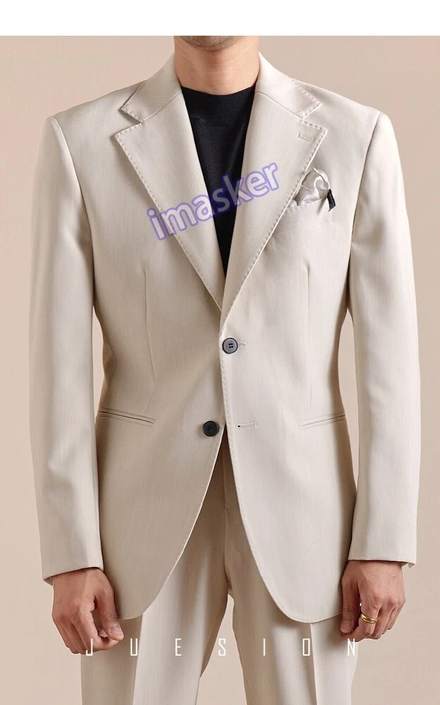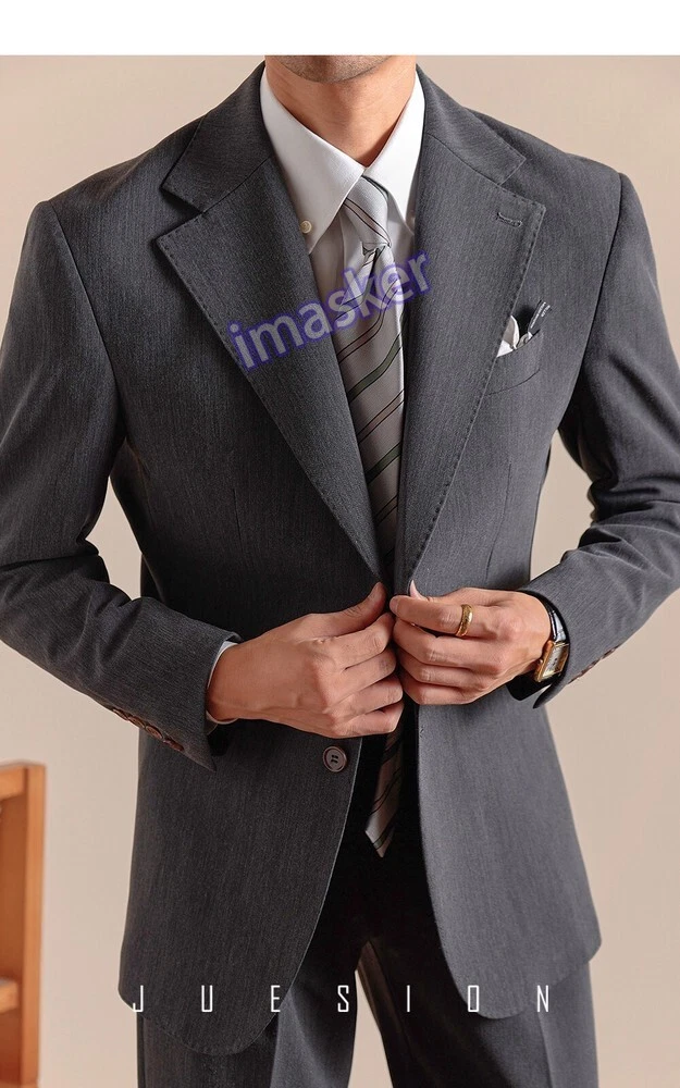 Italian Men's Naples Business Suit Two-Button Blazer for Wedding & Party
