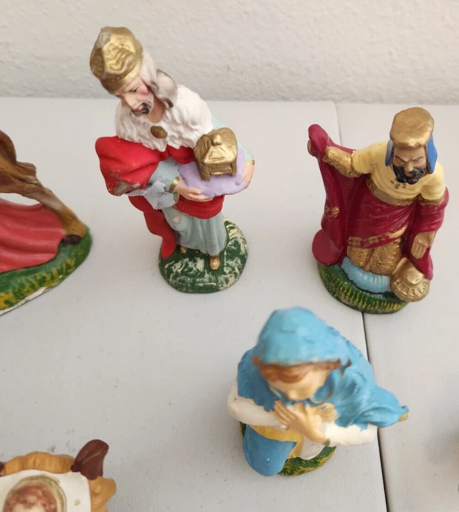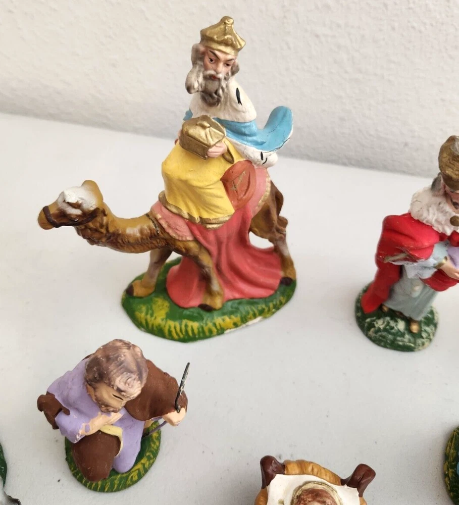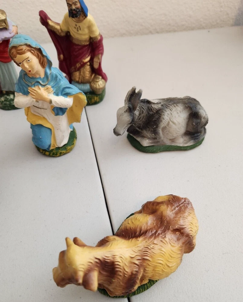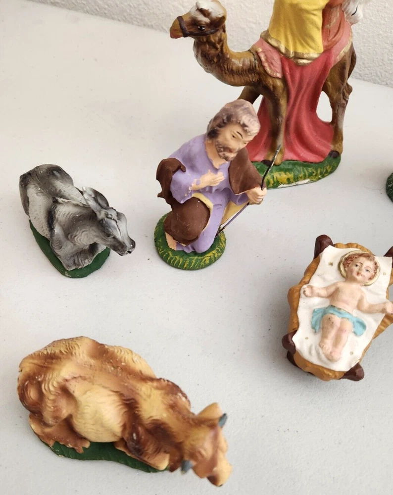 Vintage nativity - made in Italy. Tallest piece stands about 6.25 inches tall. Figures have some light paint wear - please see all photos