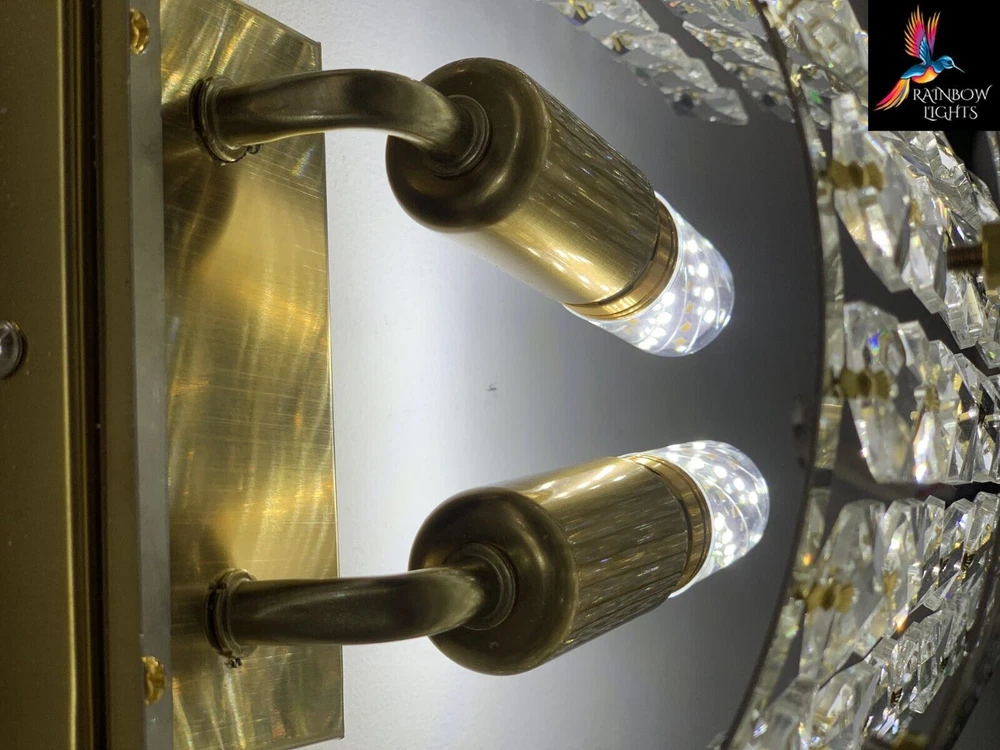 Introducing the Italian Style Crystal Tassel Golden Wall Sconce with Round Mount, a new addition that enhances your home decor with luxurious lighting from Rainbow Lights. This exquisite wall sconce is a remarkable lighting fixture that exudes sophistication and opulence through its unique design. The crystals, resembling delicate droplets, beautifully capture and refract light, creating a mesmerizing display. Its intricate shape sets it apart from traditional lighting options, adding a touch of glamour to any space. Elevate your home's ambiance with this stunning piece that seamlessly combines contemporary aesthetics with timeless elegance. Product Details: Condition: NEW Material: Crystal + Metal Width/Diameter: 24 cm Height: 40 cm Product Type: Wall Sconce Style: Contemporary Number of Bulbs: 2 Bulb Type: E12 Lamp Wattage: 10 Voltage: AC110-240V - 50/60Hz Lumens: 80-100 CCT (Color Temperature): 3000/4000/6000k Light Source: LED Shade: Three colors (White, Warm, Natural Light) Specific Uses: Indoor Weight: 2.2 kg Note: Bulb is not included in the package. Modern Chandelier, Crystal Chandelier, Light Fixtures, Hanging Lights, Farmhouse Chandelier, Antique Chandelier, Vintage Chandelier, Round Chandelier, Ceiling Lights, Luxury Chandelier, Pendant Light, Modern Lights, glass chandelier, Sputnik Lights. Crystal Chandelier Lighting - Crystal Pendant Lighting - Kitchen island Hanging Light - Dining room Pendant Light - Foyer Chandelier lighting - Bedroom Pendant light - Wall Light - Wall Sconces Listing and template services provided by inkFrog