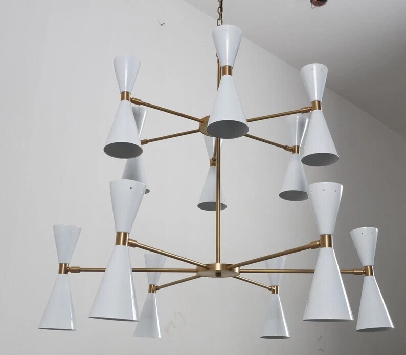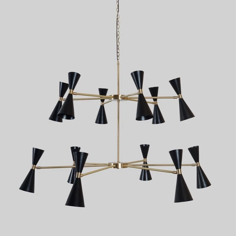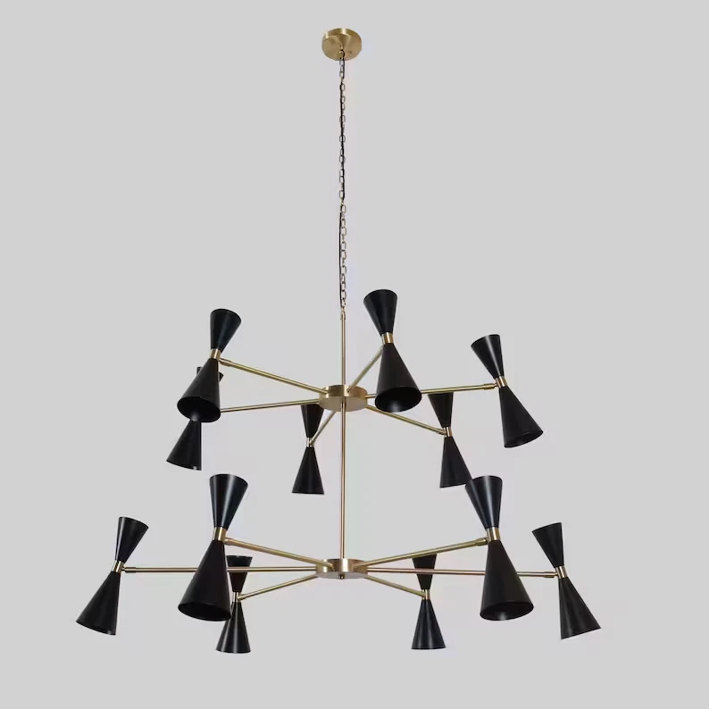 Finish: Antique Brass EC Range: A+++ - G MPN: NA Features: Dimmable, Height-Adjustable Energy Star: 5 Stars Output Voltage: 220 V Brand: Sputnik Control Style: Wall Switch Light Direction: Upwards, Downwards Style: Mid-Century Modern LED String/Strip Type: NA Lighting Technology: Compact Fluorescent Lamp Country/Region of Manufacture: India Sensor Type: Light Era: Mid 20th Century (1941-1969) Room: Attic, Bar, Bedroom, Closet, Dining Room, Living Room, Porch, Study IP Rating: IP20 Assembly Required: No Shade Shape: Cone Number of Lights: 24 Type: Chandelier Color: Black Light Color: White Power Source: Hardwired Number of Settings: 14 Installation Area: Indoor Material: Brass Voltage: 120 V Department: Adults Year Manufactured: 2024 Amperage: 6 A