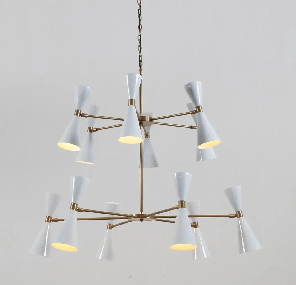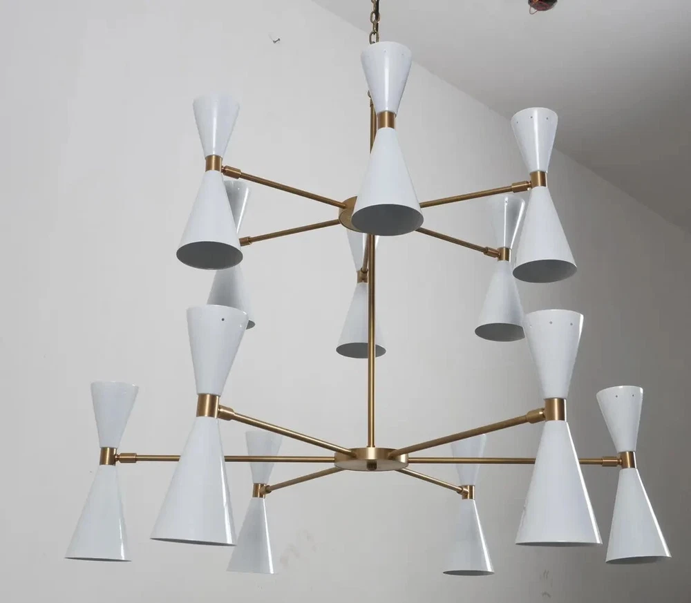 Italian Style Double Layer Twelve Arms Sputnik Light Brass Chandelier Ceiling