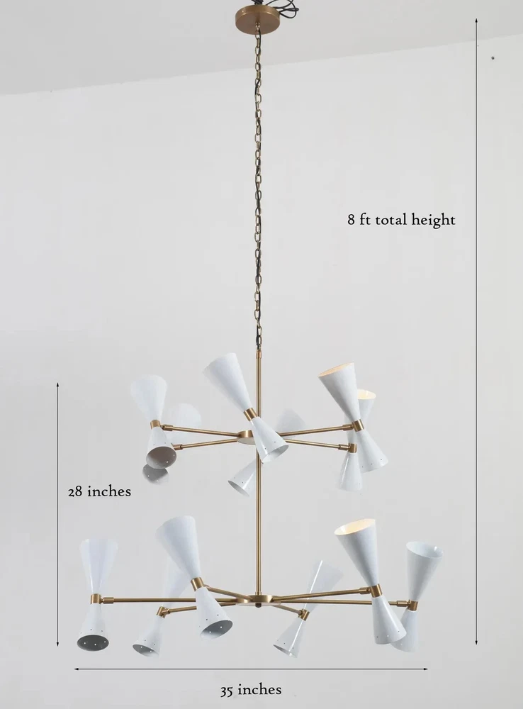 WELCOME TO MY STORE Product Description:- Materials: Brass, Glass Globe Width: 35 inches Height: 28 inches Depth: 35 inches Gift wrapping available Description Twelve arms Lights double shade Brass Sputnik Chandelier. the frame made with in natural brass with metal shade powder coat finish. brass frame is available in selection of brass finishes. custom shade color is also available. size customization is also available so please contact us if you need any customization. Fixture Size: 35"W x 35"D X 28" itself Drop Rods : Custom size drop rods available to adjust the total height. Canopy Size: 5" Dia Round Dimmable: Yes Material: Brass & Metal Number of Lights: 12 Dimmable : Yes Socket Type: 12 x E12 110-120 voltage rated for US & Canada (not included) 12 x E14 220-240 voltage rated for UK & Europe (not included) Customization : Customization is available at request so please feel free to contact us if you need any customization on our lighting. We can customize our designs to suit your requirements or build bespoke lighting from scratch just for you at very reasonable price. if you have any questions, please don't hesitate to ask and we will be more than happy to help. Thank you...