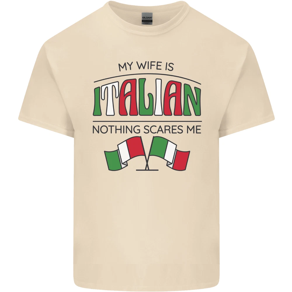 Italian Wife Nothing Scares Me Funny Italy Mens Cotton T-Shirt Tee Top