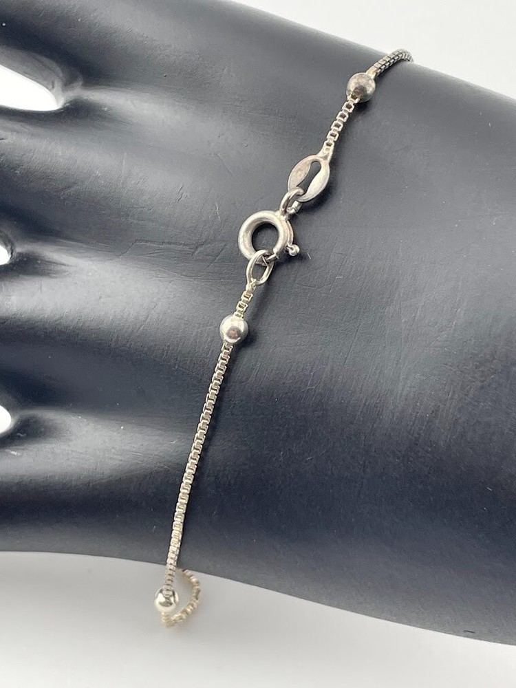 ITALY 925 STERLING SILVER 1MM BOX CHAIN 2.8MM BEAD STATION ANKLET 9.75" 1838 BOHO SURFER ****************************** Thank you for your interest in our jewelry. We?d like to introduce ourselves. We are just a retired couple who love matching our customers with great jewelry. We?re not professional jewelers. To have the best shopping experience we like to recommend the following: Please measure your hand, wrist, finger or neck to ensure the best fit. We can use your measurements to help with sizing. Please ask all the questions you want. We know some stuff and, if we don?t, we?ll do the research. We like to learn too. More Stuff: If an item is described as ?gold over 925 sterling silver? this means it is gold vermeil. Vermeil is the process by which a layer of gold (usually 14k or 18k) is bonded to sterling silver. We only clean with gentle soap and warm water to avoid damage. The items we sell may be new or pre-owned and may have normal wear, slight damage, and/or tarnish. We make every effort to ensure the items we sell are as described. This includes testing to confirm metal purity if the item isn?t marked, and testing for gemstone identity. We try to put measurements in the jewelry description and include a photo of each piece with a U.S. quarter (25mm).