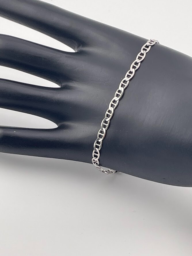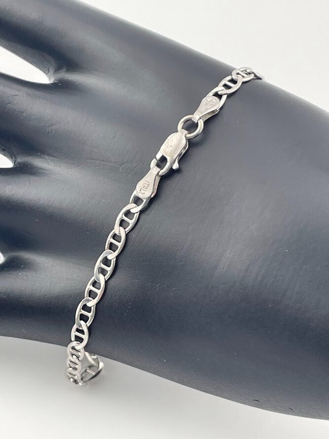 ITALY 925 STERLING SILVER 3.6MM MARINER CCHAIN 9" ANKLET BRACELET MODERN 539 ****************************** Thank you for your interest in our jewelry. We?d like to introduce ourselves. We are just a retired couple who love matching our customers with great jewelry. We?re not professional jewelers. To have the best shopping experience we like to recommend the following: Please measure your hand, wrist, finger or neck to ensure the best fit. We can use your measurements to help with sizing. Please ask all the questions you want. We know some stuff and, if we don?t, we?ll do the research. We like to learn too. More Stuff: If an item is described as ?gold over 925 sterling silver? this means it is gold vermeil. Vermeil is the process by which a layer of gold (usually 14k or 18k) is bonded to sterling silver. We only clean with gentle soap and warm water to avoid damage. The items we sell may be new or pre-owned and may have normal wear, slight damage, and/or tarnish. We make every effort to ensure the items we sell are as described. This includes testing to confirm metal purity if the item isn?t marked, and testing for gemstone identity. We try to put measurements in the jewelry description and include a photo of each piece with a U.S. quarter (25mm).