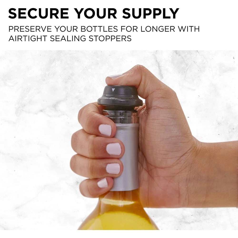 Have you sipping on flavor in seconds!Wine never tasted so sensationally with the electric wine bottle opener set. Featuring a curated list of opening, pouring, and more, this amazing electric wine opener set transforms your hosting prowess to the next level. This electric corkscrew wine opener is cordless fully battery-operated and compact, so bring the electric wine set whenever you go. Save Time & money with our wine gift set!Features: Perfect gift set for friends or family Preserve up to 2 bottles of wine Easily open bottles in seconds Long lasting on a single charge Keeps wine flavorful with aerator Open 40 bottles before needing to charge Aerator enhances the wine flavor with each pour WARNING: Cancer and Reproductive Harm www.P65Warnings.ca.govDimensions: 11.4" L x 10.8" W Free Shipping Over $49.99* Details Ivation 7-Piece Wine Gift Set, Electric Wine Opener, Wine Aerator Pourer Product Description: Have you sipping on flavor in seconds! Wine never tasted so sensationally with the electric wine bottle opener set. Featuring a curated list of opening, pouring, and more, this amazing electric wine opener set transforms your hosting prowess to the next level. This electric corkscrew wine opener is cordless fully battery-operated and compact, so bring the electric wine set whenever you go. Save Time & money with our wine gift set! Features: Perfect gift set for friends or family Preserve up to 2 bottles of wine Easily open bottles in seconds Long lasting on a single charge Keeps wine flavorful with aerator Open 40 bottles before needing to charge Aerator enhances the wine flavor with each pour WARNINGCancer and Reproductive Harm www.P65Warnings.ca.gov Dimensions: 11.4" L x 10.8" W x 17.7" H Technical Details: Power source4 x AA batteries Operating limit40 bottles per charge Compatible cork diameter0.79" - 0.94"