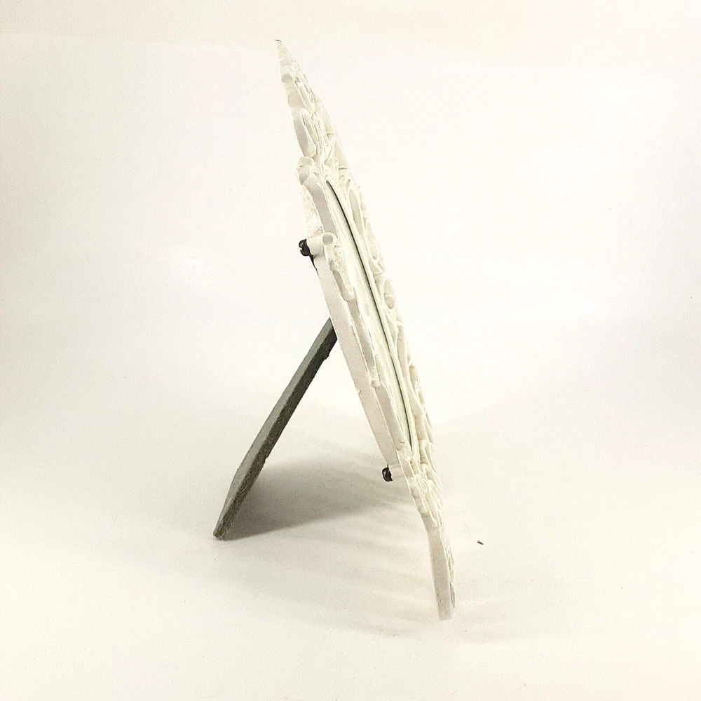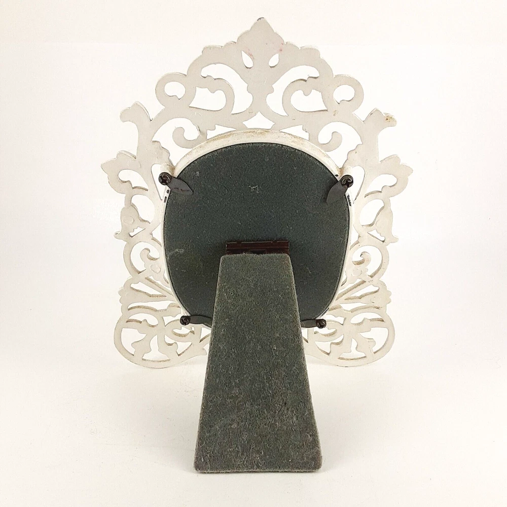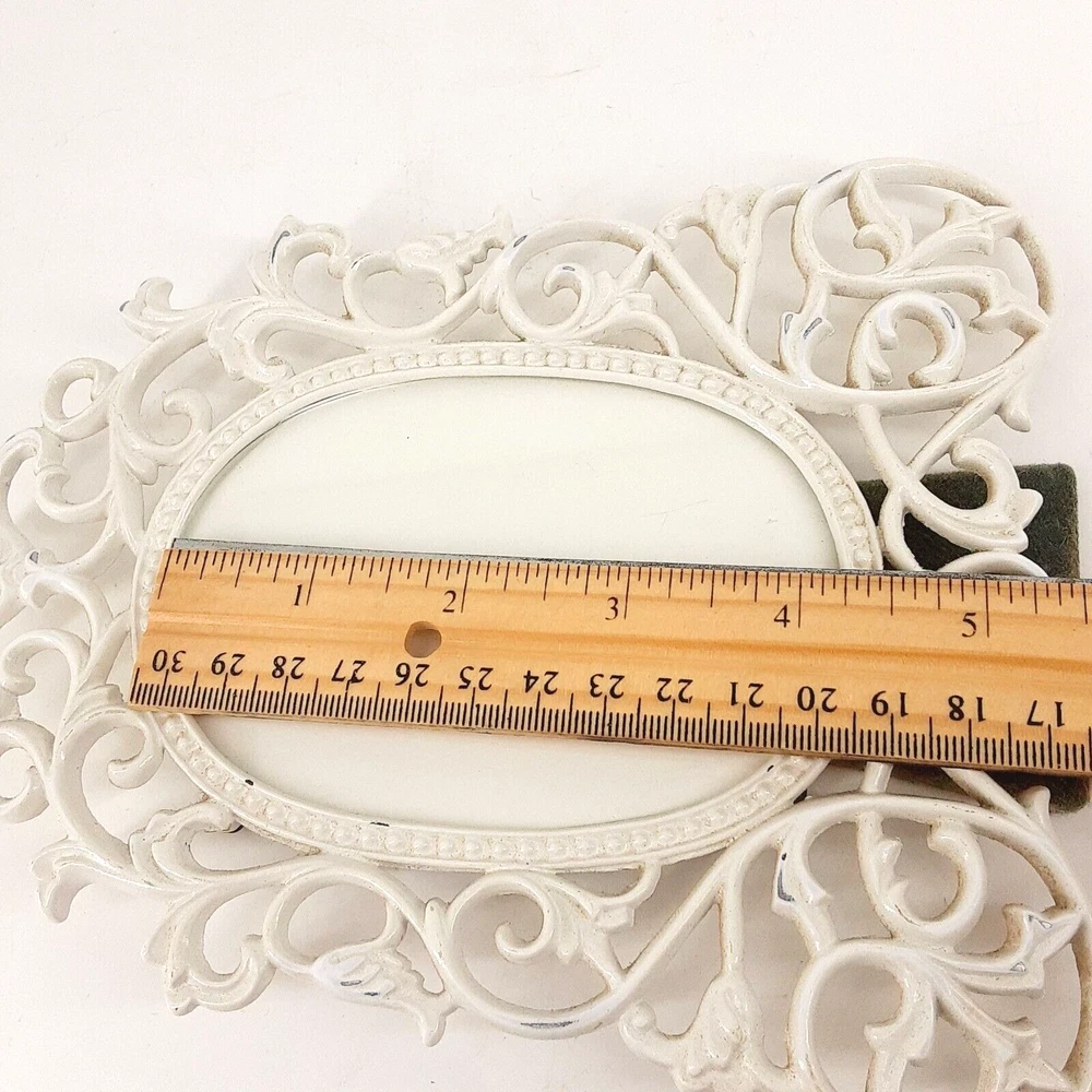 WE APPRECIATE OUR CUSTOMERS THANK YOU FOR SHOPPING WITH US!! Ivory Color Open Scroll Enamel Table Picture Photo Frame Lightly Destressed Display your treasured memories with this beautiful Victorian-style photo frame. The oval-shaped ivory enamel frame features an elegant open scroll design, lightly distressed for a vintage look. At 7 3/4" in height and 5 1/4" in length, it can hold a single 5x3.5" photo and is made of durable metal. The frame is perfect for adding a touch of sophistication to any room and would make a great addition to any collection of decorative collectibles. *Please look at pictures as they are part of the description/details. *Good Preowned Condition *Thanks for looking! Please remember items listed as vintage or used will typically show age appropriate wear. I have provided lots of photos for you to see the general condition of each item. If you would like any further photos or information, please contact me and I will be happy to try and help. I do my best to describe items accurately. Pictures are considered part of the description. Cameras and/or computers can sometimes slightly alter colors. Any measurements should be considered approximate. If you need an exact measurement, please ask. Terms and Conditions : Once a purchase has been made, it is legally binding contract. Payments: Payment is due when purchase is made, Thank you for your prompt payment. *If payment is not received within 4 days of purchase, then a Non-Paying Buyer Dispute will be filed, and eBay may mark it against your account. SHIPPING: We ship daily (Mon-Fri not to include holidays) and will ship within two business day of receiving payment! I do accept returns if you are unhappy with your item for any reason. I ask that it be returned in the original condition you received it in. I take pride in shipping items carefully. However, if an item arrives damaged, please contact me immediately. All shipping materials (box, poly bag, bubble wrap, paper, etc.) must be kept, as well as it is necessary to take 7 pictures to document exterior damage of the box, as well as the interior damage of the item(s) that was purchased. This documentation is required to file a damage claim with both USPS and UPS. Upon Receiving : If you are satisfied with your product(s), please leave some positive feedback. *We love hearing that you have received your purchase(s), and are content, delighted, and untroubled. *Once you receive your purchase(s), please inspect them for any damage during transit. Report any damage within 24hrs via eBay e-mail. Return Policy : You may return unworn, unwashed merchandise in its original condition with all tags attached. If you bought a brand-new item, it MUST be returned brand new (Sealed and Any returns MUST be sent back to us complete and in the same condition as delivered to you Unopened). Items must be in new or original condition (free of odor, markings etc.) and ready for resale. Any serial or product numbers must match the purchased item for refund. PLEASE NOTE that shipping will not be refunded . Upon time of purchase, you are agreeing to this return policy. CHECKOUT: Please make sure that your address on file with eBay is complete and correct as we must use the address you have with eBay. *If you have any questions about your purchase, delivery, or a possible product return; Please contact us immediately and directly through your eBay accounts message center! *We are Eco-Friendly, leaving the lightest possible impact on our environment! Whenever possible we will reuse packing material to aid with our Eco goals. Customer service and feedback: If you have any questions about your purchase, delivery, or a possible product return; Please contact us immediately and directly through your eBay account message center! Your satisfaction is our top priority! Our goal is to earn your 5-star 100% feedback. Thank You for buying from us!