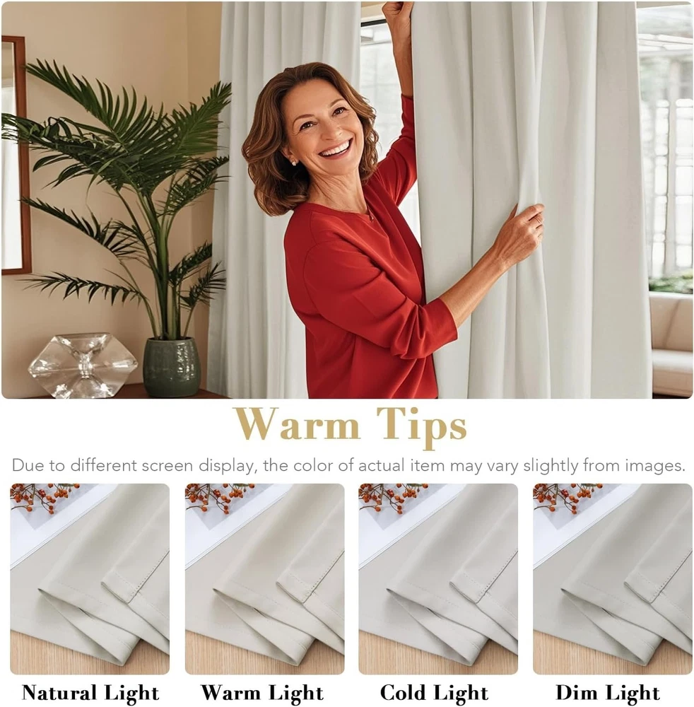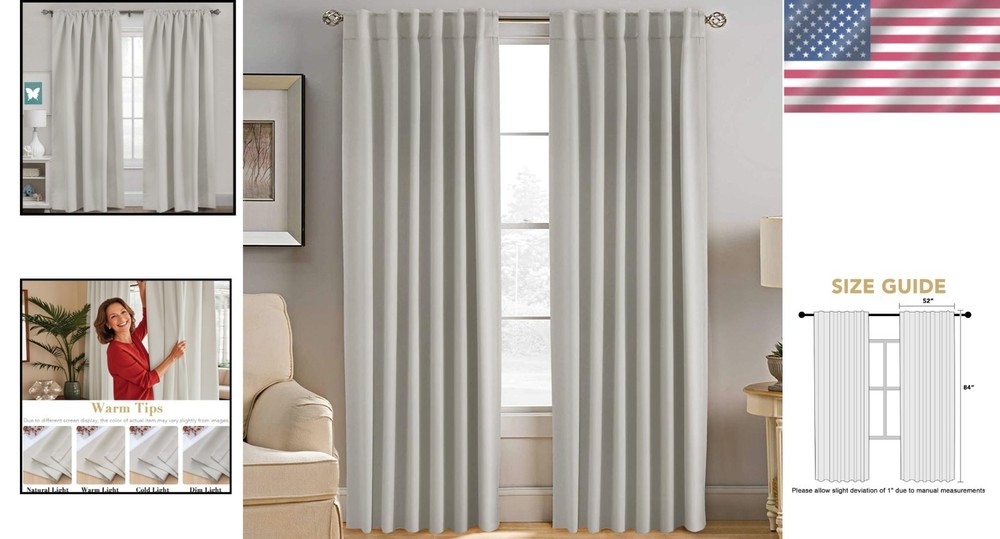 Ivory/Cream Blackout Thermal Curtains 52x84 - Room Darkening Drapes Set of 2