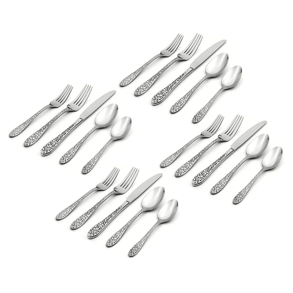 Ivy Flourish 20 Piece Fine Flatware Set Service 4 1810 Stainless Steel Silverwar