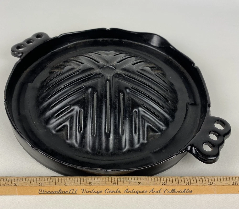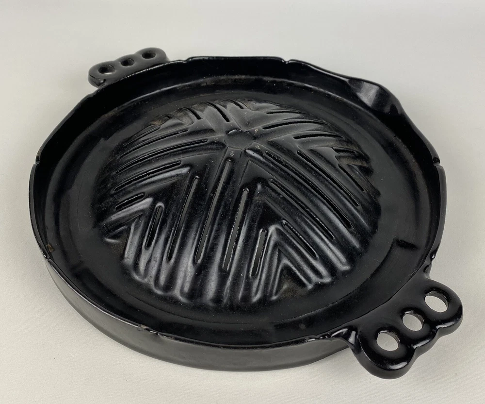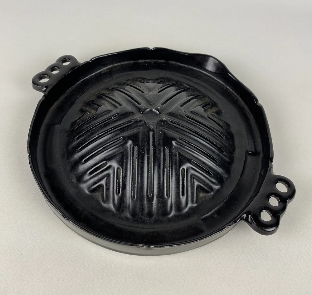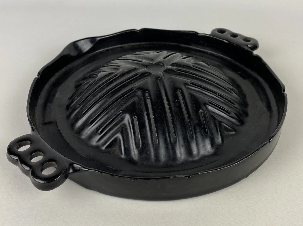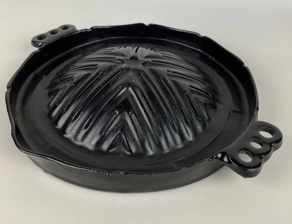 Impress your guests with this high-quality Iwachu Nanbu Tekki Mongolian Barbecue Pan. This round grill pan is made of genuine cast iron with a silicon baking finish that ensures even heat distribution and easy cleaning. It comes with a sturdy handle that guarantees a comfortable and safe grip while cooking. This grill pan is compatible with induction, gas, and electric stoves, with a diameter of 11.2 inches and a weight of 6.4 pounds. The set includes a grill pan that is perfect for cooking meat, vegetables, and more. With its elegant black color and Japanese craftsmanship, this grill pan is a must-have for any kitchen. Most of our items are second hand and have some shelf wear on them. We do not guarantee mint condition unless otherwise noted. Please take time to look closely at all photos of items and specifics, as they are all part of the complete description. Most noticeable flaws we see will be pointed out with a pen. All items in the photos are of the actual product being shipped directly to you (minus display props and measuring devices) If an item is not in the photos, please do not expect it. If you have any questions or concerns, please reach out to us. Our feedback speaks for itself. We do all we can to keep you satisfied with your buying experience from Streamline717