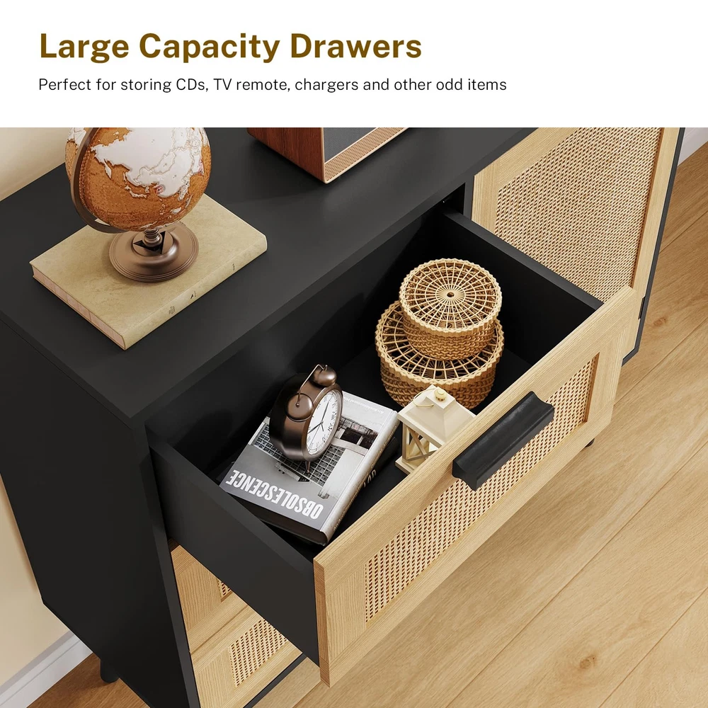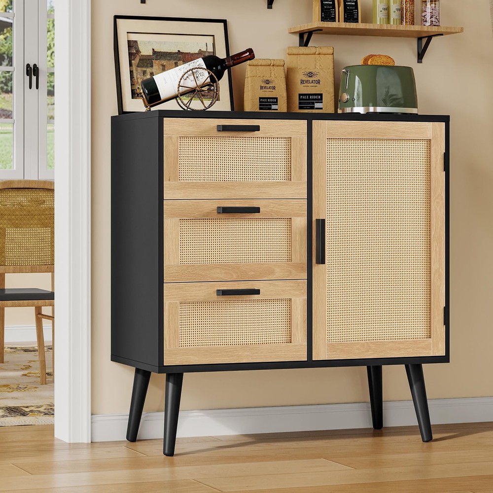 Storage Cabinet with Adjustable Shelf To Enlarge Your Space Are you still find a storage cabinet which can not only store your daily items in living room, kitchen or any other space in your house, but also can decorate your house? Try out this IWELL storage cabinet! Its rattan door creates a mid-century atmosphere, making your home full of modern and elegant, no longer monotonous. Side cabinet with adjustable shelf can store items of different sizes for a long time and keep your stuff away from dust and moisture. ⭐【Tucking Away Room Clutter】Looking for extra storage space for your home? Try this cabinet, measurements 11.8"D x 31.5"L x 30.7"H, wider than normal storage cabinet. It features a spacious tabletop, 3 storage drawers, and side cabinet, provide plenty of room to store books, blankets, toys, clothes, or kitchen appliances,etc. Interior shelf is adjustable, so you can adjust the height according to your needs. A perfect solution for keeping your living space organized and clutter-free. ⭐【Combining Aesthetic Beauty with Great Practicality】This natural rattan door not only store your items, also is a nice addition as a home decor. You can used it storage cabinet in the living room, sideboard buffet cabinet for in the dinning room or kitchen, shoe cabinet in the entry way, bookcase in the office, or a bathroom cabinet for laundry room, even can be used as a TV stand(2 cabinets can fits up to 75" TVs). Whatever you decide to do, this storage cabinet is eye catching in your house. ⭐【Stability and Safety First】Our rattan cabinet is made of premium wood board and natural rattan, the material is safe and environmentally friendly, and will not harm your health. Sturdy and durable, easy to clean, which promises a long service life(Can hold up to 150lbs), even after many years of use, it is not easy to be damp or deformed like ordinary wood. We attach anti-toppling fittings helps secure it to the wall for a safer living space for your kids and pets. ⭐【Successful Assembly】Do not worry about the assembly, and we provide you with illustrated instructions and necessaries along with the package, you clearly and quickly assemble this buffet cabinet. Just take 45 minutes, this cabinet will give you a surprise! If you need assemble assistance, please contact us by order page and we will give you assemble video. ⭐【100% Satisfaction Service】Still worry? If you have any issue, please help to tell us, we will give 100% Satisfaction solution within 24 hour or give you 100% refund.