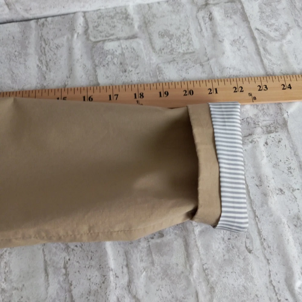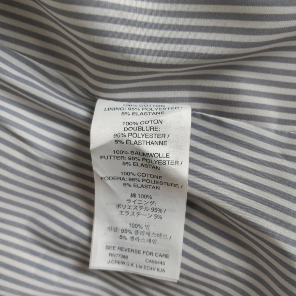 Crafted for the modern professional, this J.Crew Double Breasted Blazer is a versatile addition to your wardrobe. The classic tan color and solid pattern make it an ideal choice for business meetings, travel, or casual office wear. Its short jacket/coat length paired with a three-button front style offers a sleek, tailored fit that flatters a size 4 frame. Functionality meets style with features like a fully lined striped interior with 100% polyester lining for comfort, convenient pockets for essentials, and a touch of stretch for ease of movement. Whether you're dressing for fall, spring, or winter, this blazer is machine washable and ready to complement your everyday and career ensembles.