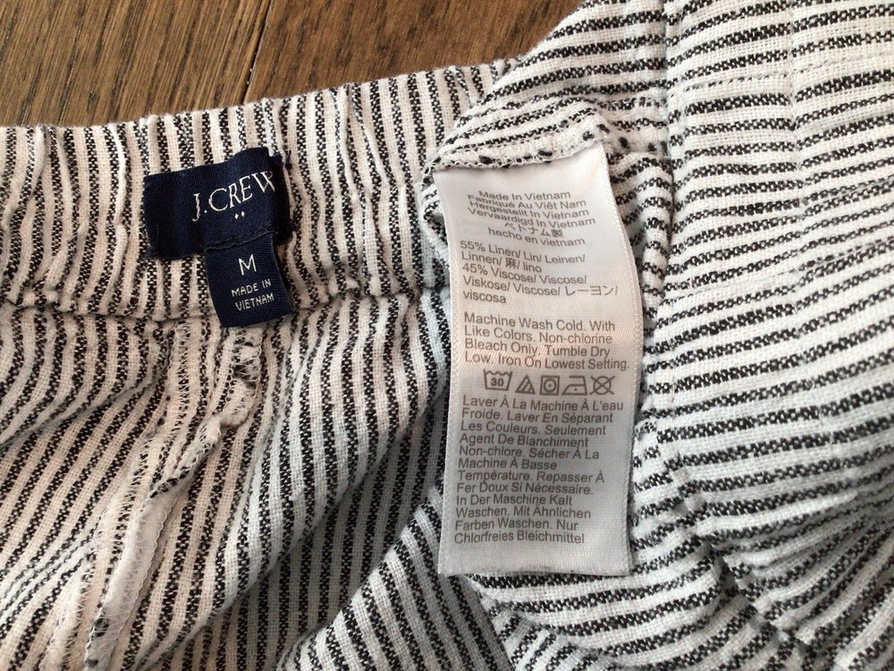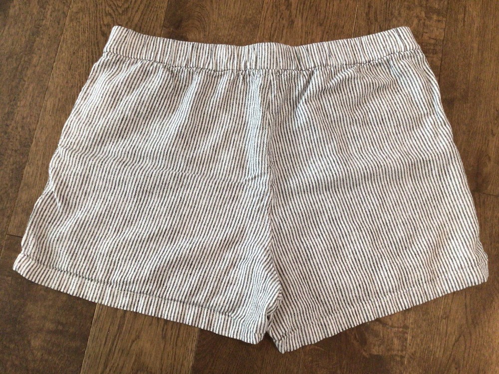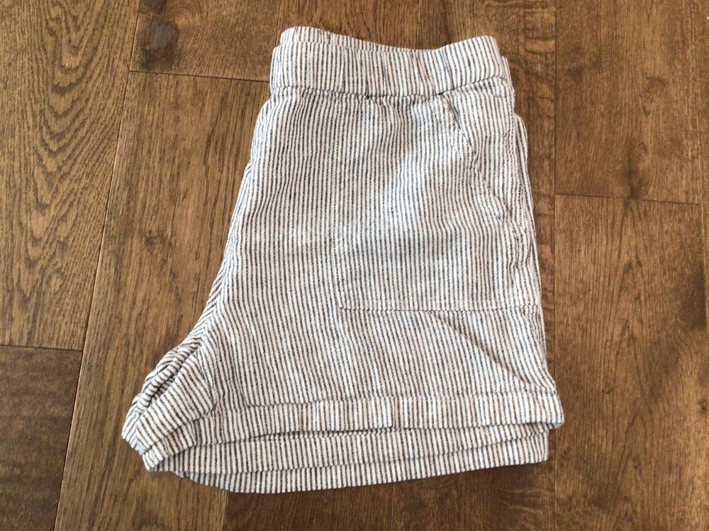 J Crew Factory Linen Blend Women’s Shorts Medium. Made from a blend of viscose and linen, these black shorts feature a striped pattern and have a flat front. With a mid-rise and regular fit, they are machine washable and have slash pockets for added convenience. The J Crew Factory Linen Blend Women’s Shorts in size Medium are perfect for a casual and classic look. Made from a blend of viscose and linen, these black shorts feature a striped pattern and have a flat front. With a mid-rise and regular fit, they are machine washable and have slash pockets for added convenience. Perfect for the summer and spring seasons, these shorts can be worn for various activities like walking and beach outings. Add a touch of style to your wardrobe with these versatile and comfortable chino shorts from J.CREW. Striped black and white linen viscose blend. They run a little big. I usually wear a large and sized down. Barely worn, freshly laundered. Purchased this spring. Check out my other listings because we are cleaning out the closets. I lost some weight and they just fit too loose now.