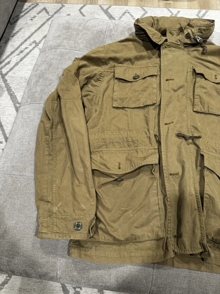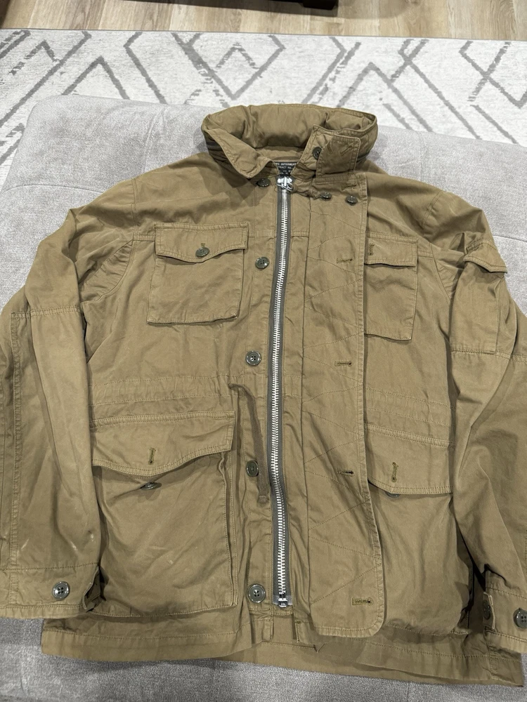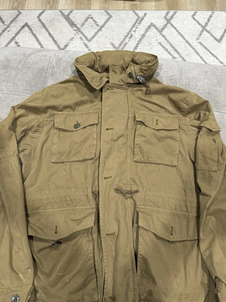 J Crew Field Mechanic Jacket Mens Size XL Zip Away Hood Brown