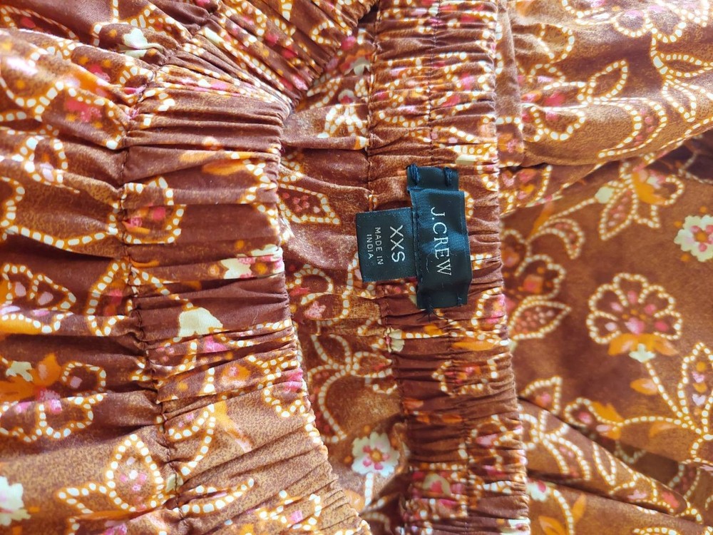 J Crew New Tiered Pull-On Maxi Skirt in Vintage Vines sz XXS Pecan Color Cotton