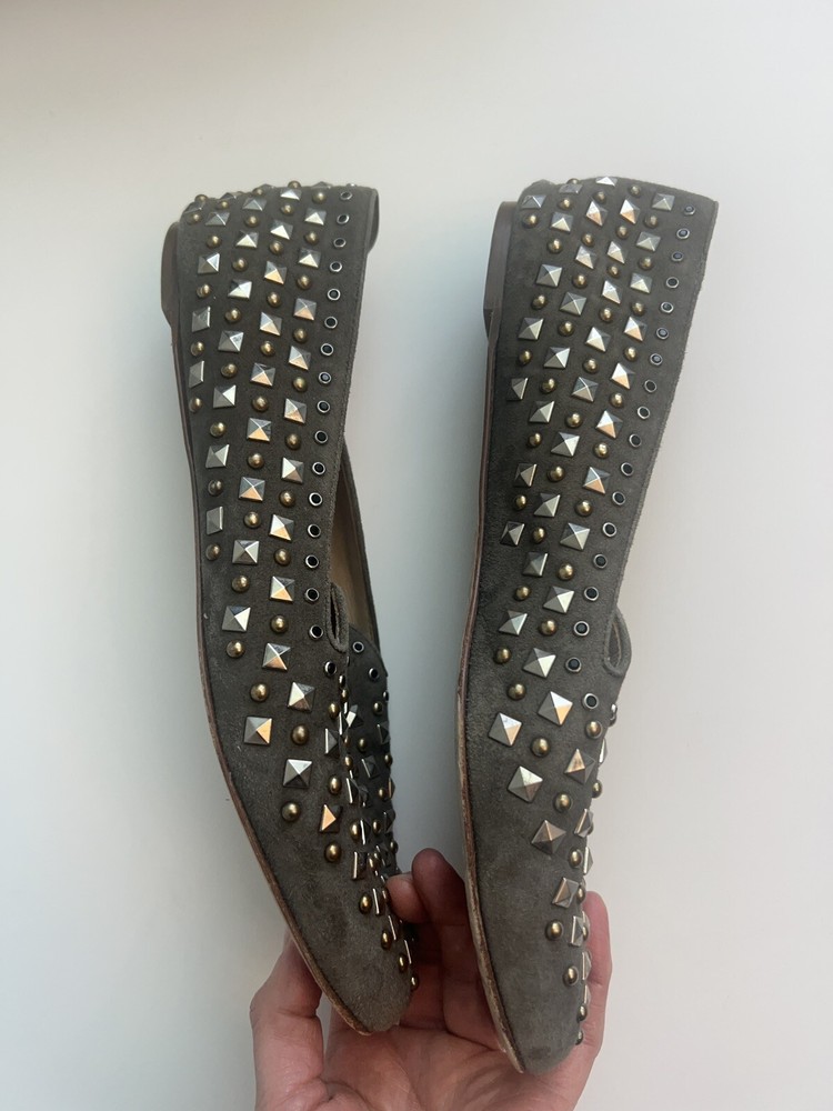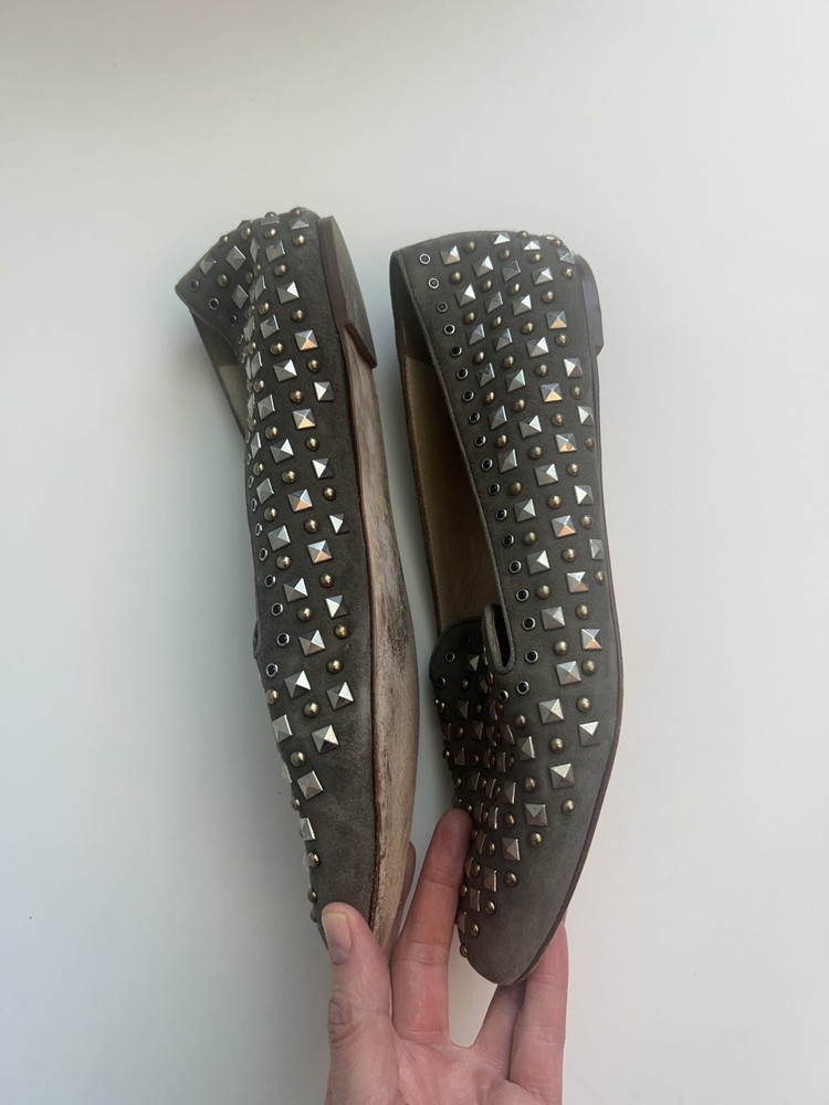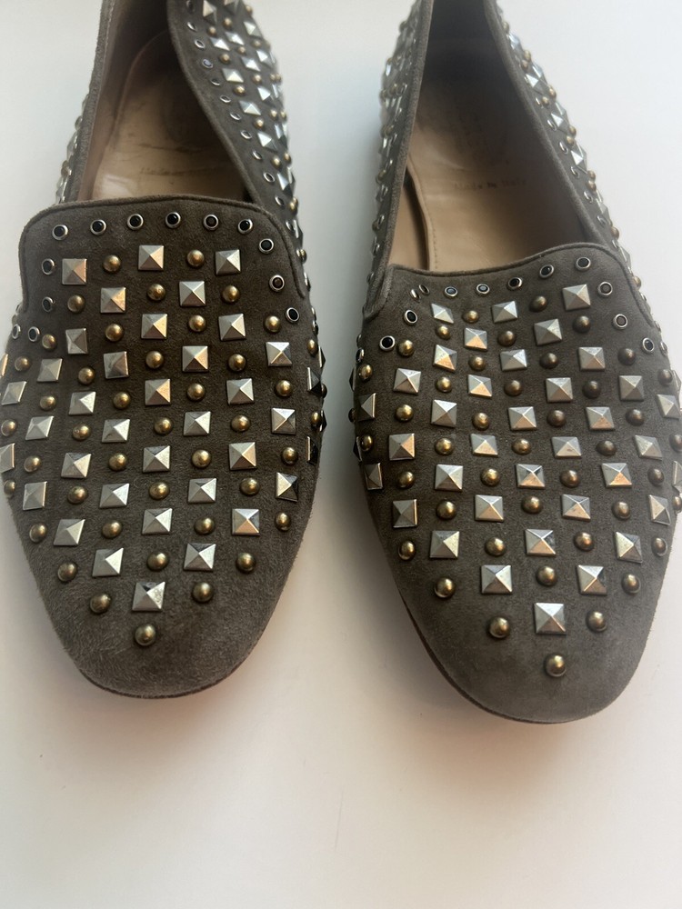 These chic loafers add instant style with their sleek gray suede and subtle studs—so comfortable and versatile for dressing up or down. The quality is amazing, and they arrived in perfect condition. Absolutely love them!