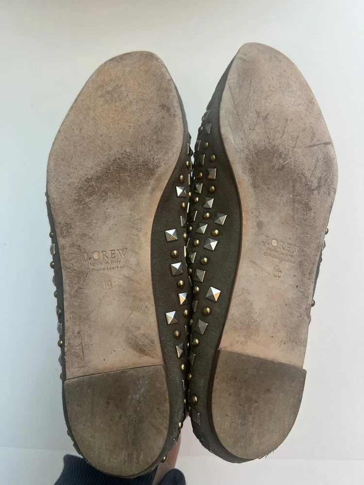J. Crew Studded Suede Loafers Size 10 Excellent condition Chic and stylish studded loafers in a versatile gray color. Perfect for adding a touch of edge to any outfit.