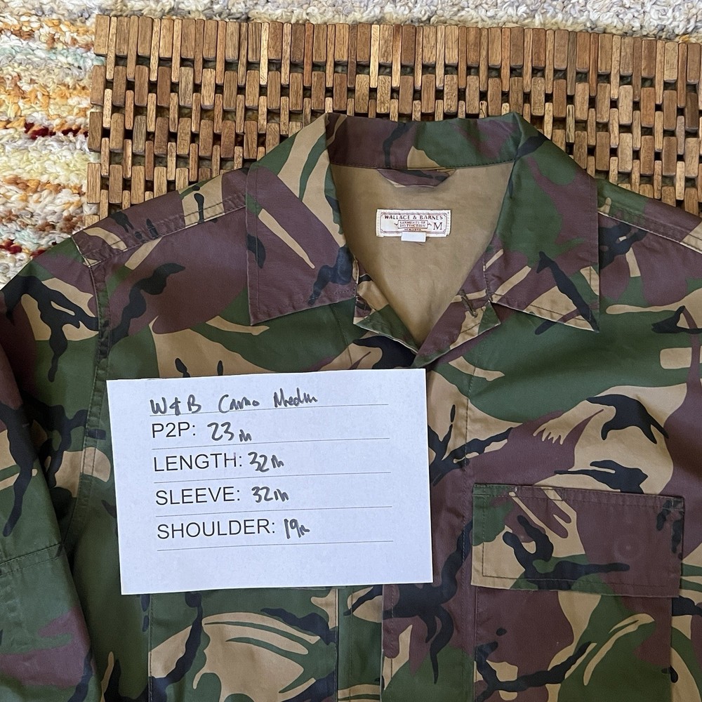 The J. CREW Wallace & Barnes Camo Chore Coat Jacket in Green Brown is a stylish and versatile addition to any man's wardrobe. Made from durable cotton canvas, this vintage-inspired jacket features a classic button-down collar and solid pattern. Perfect for casual everyday wear or outdoor activities like walking and hiking, this medium-sized jacket is ideal for the fall, winter, and spring seasons. With its timeless American classic aesthetic, this Wallace & Barnes jacket combines comfort and style for a must-have outerwear option.