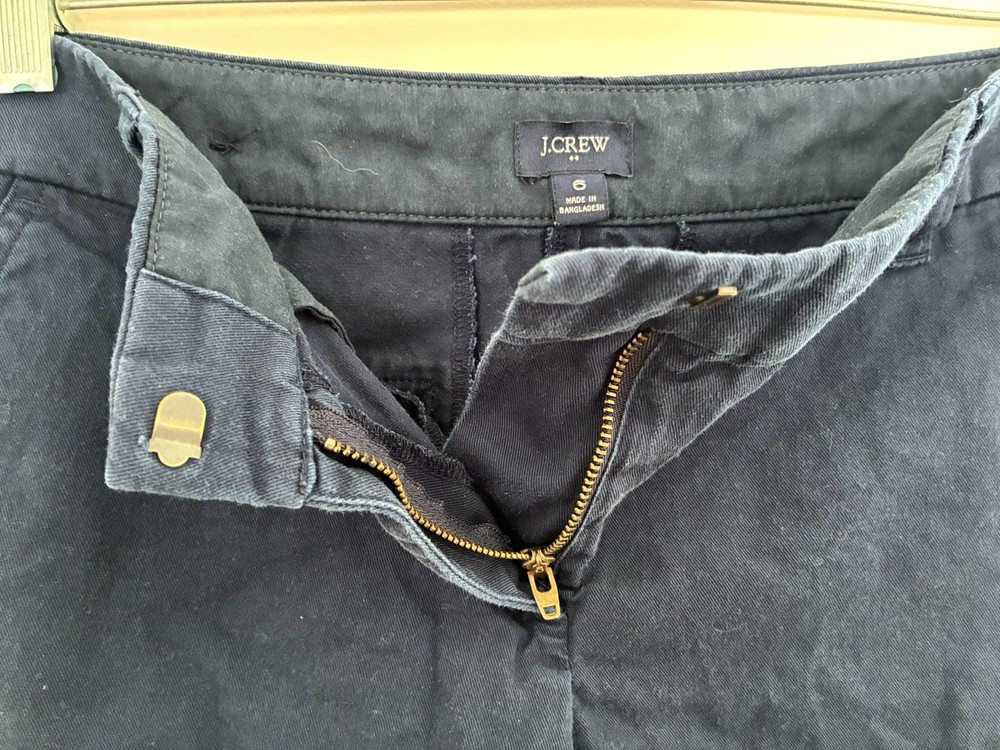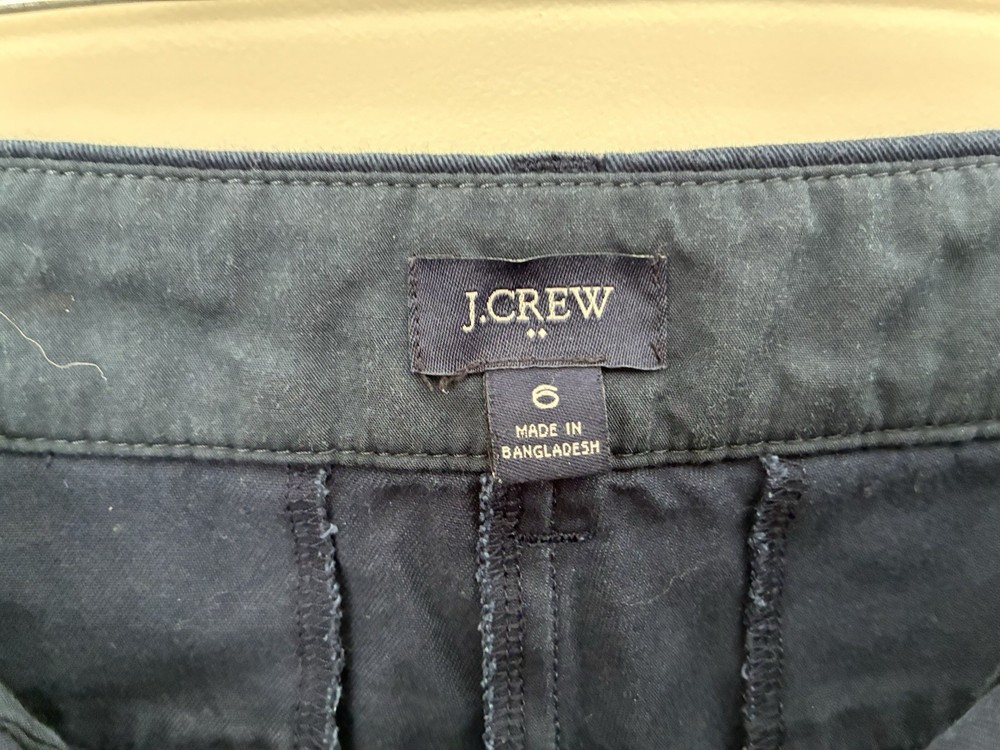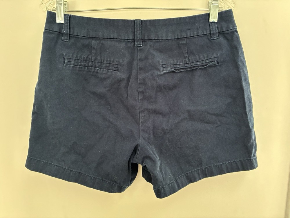 J. Crew Women's 5" Inseam Solid Navy Blue 100% Cotton Zip Fly Chino Shorts Sz 6. Condition is pre-owned. Smoke free, pet free home. Shipped via USPS Ground Advantage. In very good condition. Free of rips or stains.