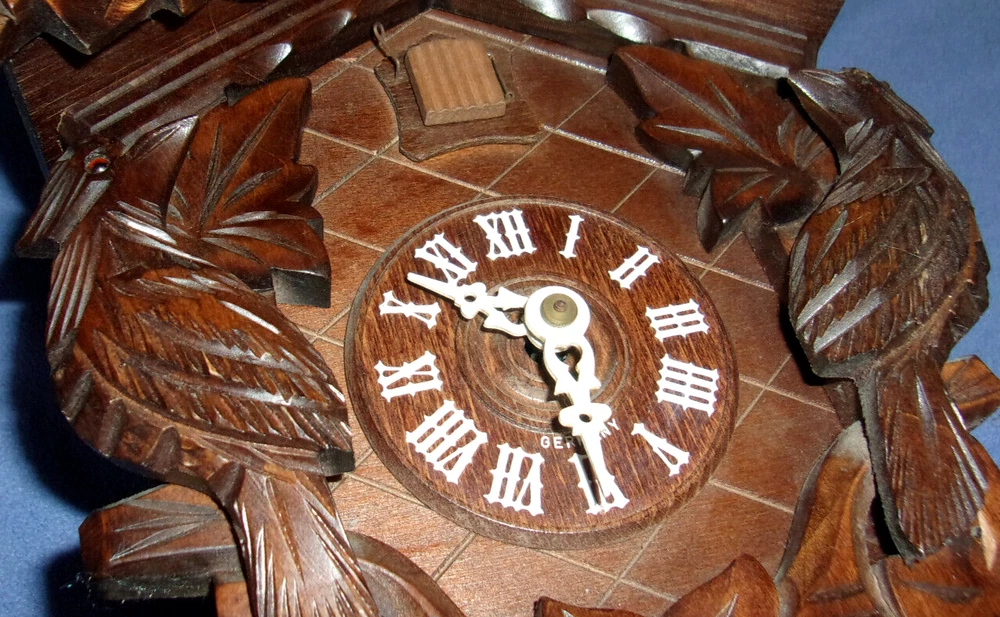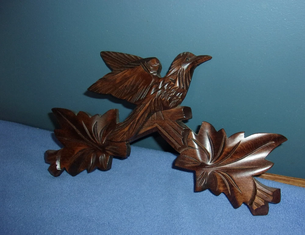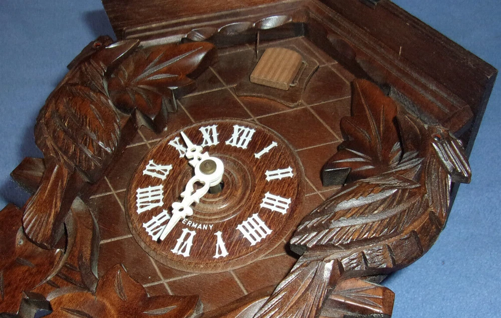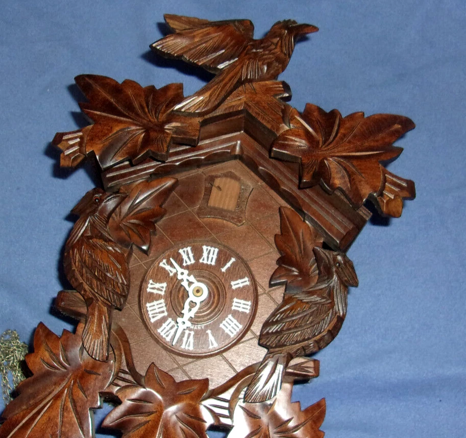 J. ENGSTLER BLACK FOREST 3 CARVED BIRDS GERMAN CUCKOO CLOCK
