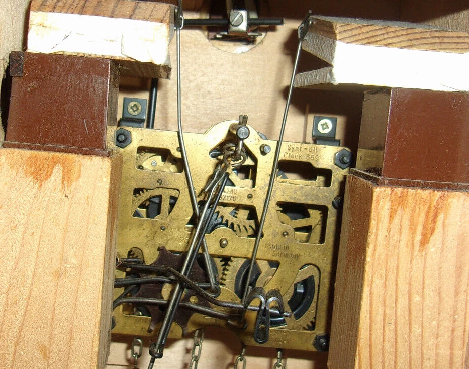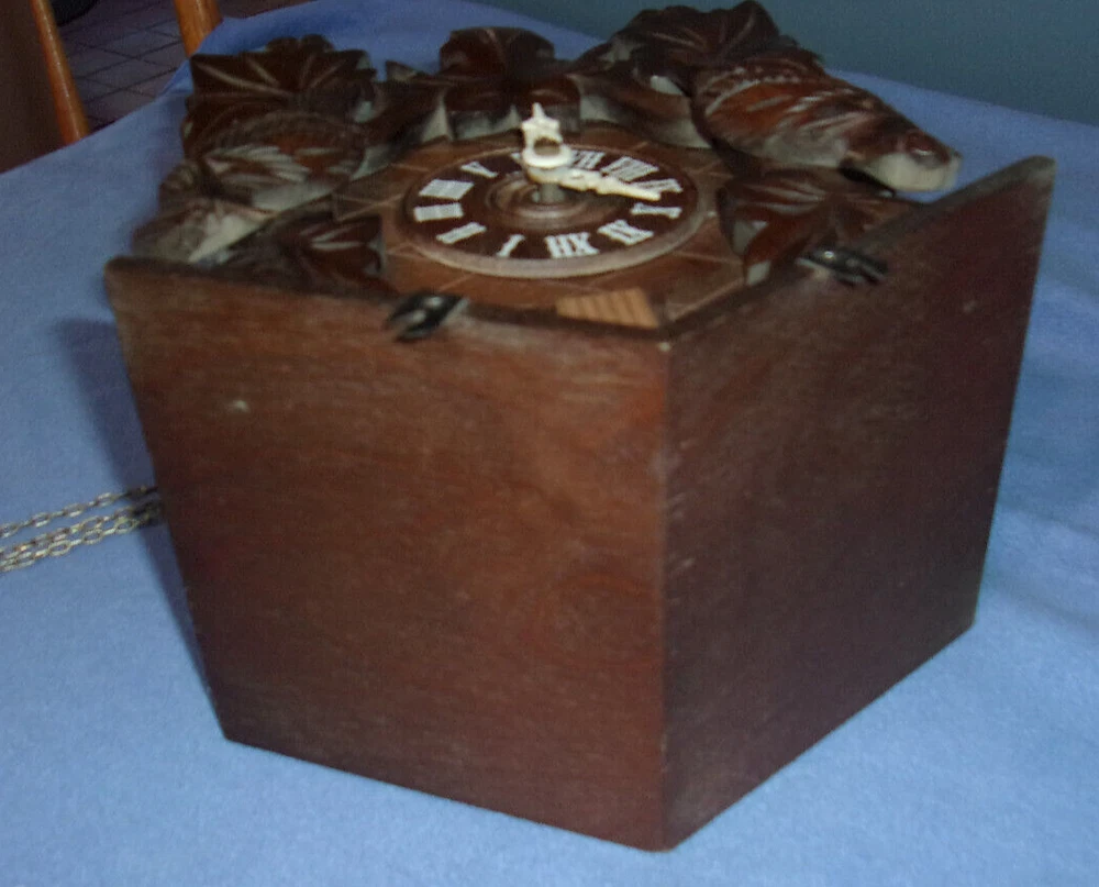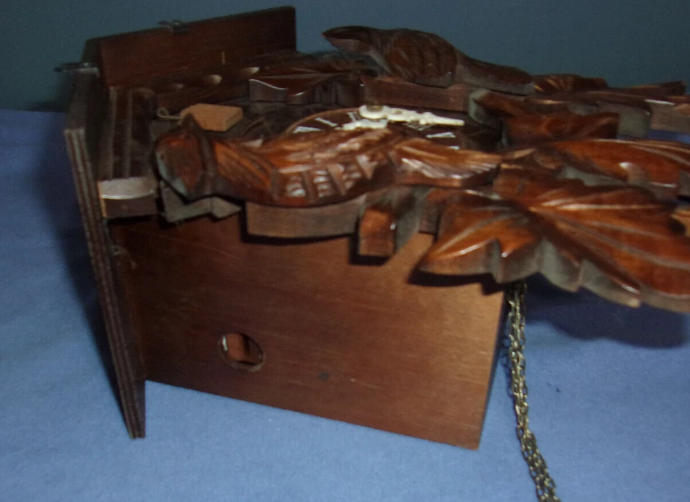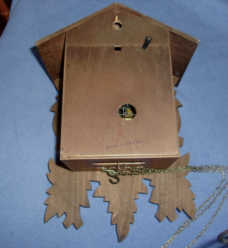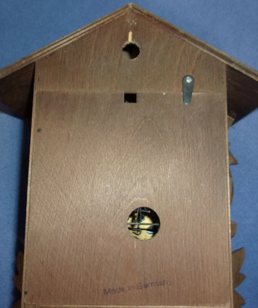 THIS AUCTION IS FOR A VINTAGE J. ENGSTLER BLACK FOREST GERMAN CUCKOO CLOCK NO. 859 THIS IS A USED ITEM IN VERY GOOD COSMETIC CONDITION BEING SOLD AS IS UNTESTED, NOT SURE IT RUNS - PLEASE SEE FULL DESCRIPTION: CLOCK HANDS ARE COMPLETE AND INTACT COMES WITH 2 CAST IRON PINE CONE WEIGHTS - EACH MEASURES APPROX. 4-1/2" THE CLOCK BODY MEASURES APPROX. 7" X 5" 3 BEAUTIFULLY HAND CARVED BIRDS WITH BEADED EYES ALL THE CLOCK NUMBERS ARE INTACT WILL NEED A LIGHT CLEANING SOME DUST IN CREVICES MECHANISM IS CLEAN CUCKOO DOOR AND BIRD IS INTACT BELLOWS ARE INTACT REAR DOOR AND SPRING ARE INTACT TOTAL CLOCK SIZE FROM ROOF PEAK TO BOTTOM LEAF IS APPROX. 11" THIS HAS BEEN ON WALL DISPLAY FOR YEARS , WE HAVEN'T HAD IT RUNNING IN MANY YEARS , DISPLAYS GREAT - SOLD UNTESTED SEVERAL MARKINGS ON MECHANISM AS FOLLOWS: SYNT. OIL , CLOCK 859 G.M. 1884288 , 1692176 25-J MADE IN GERMANY NO (O) JEWELS J. ENGSTLER VS - VILLIGEN REGULA Sign up for my newsletter by adding my eBay Store to your Favorites Surf our store for all kinds of great vintage novelty toys, comics and unusual items ! . . To save you money- we will combine shipping on all multiple item purchases. Please ask for a combined shipping invoice.. For more details on our policies please visit our e-bay store policies pages. . INTERNATIONAL INSURANCE: Insurance is now included on most International orders. Please see our e-bay store shipping policy page for country exclusions. . International Buyers: Import duties, taxes and charges are the buyers responsibility and are not included in the price or the shipping charge. Please check with your country's customs office prior to bidding/buying to determine what these additional charges may be. . We promise your satisfaction in every sale , Buy with confidence !!