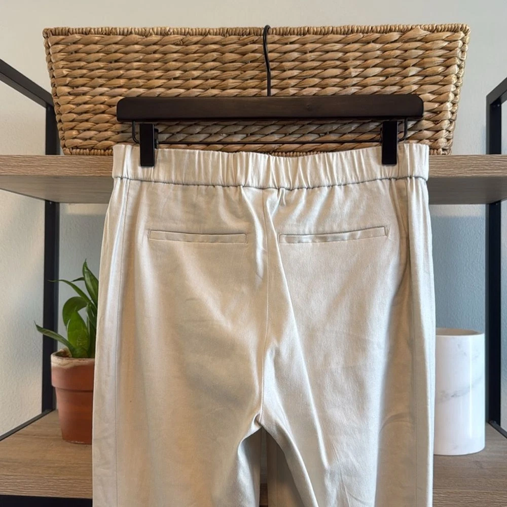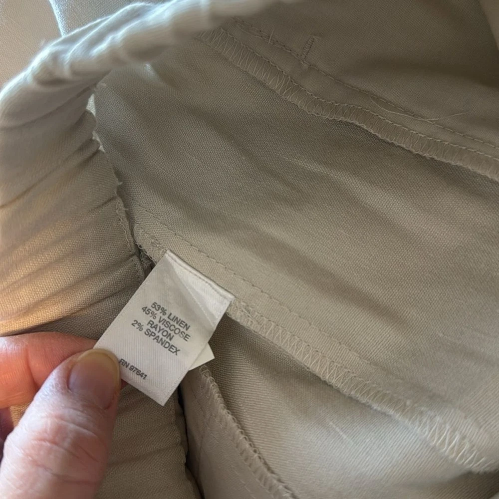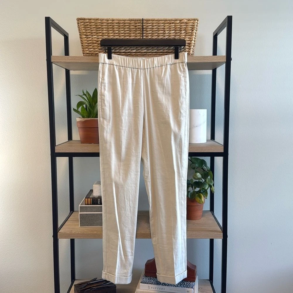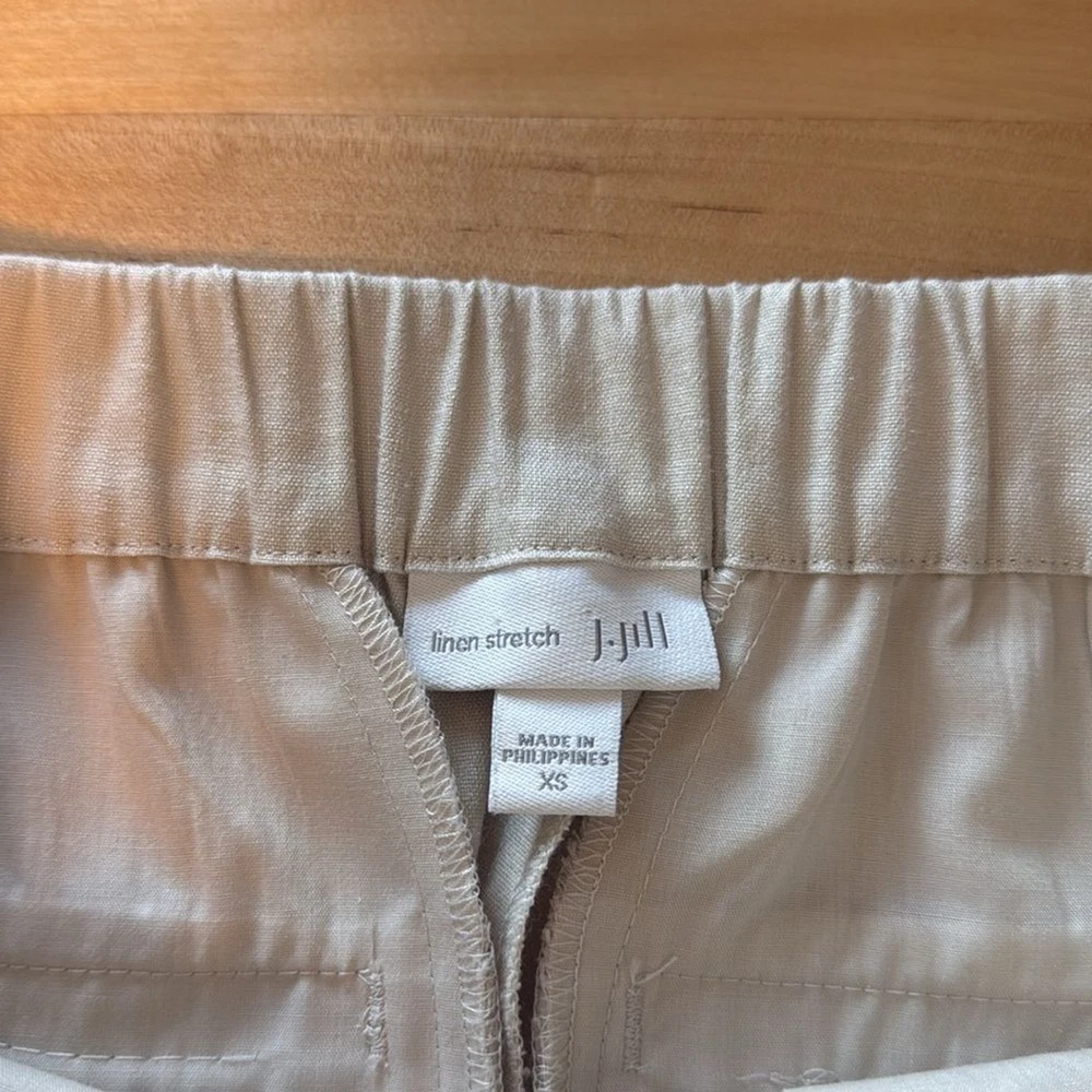 J. Jill Linen Blend Pocket Mid-Rise Cream Ankle Slack Pants, XS EUC- no wear to note/like new. 53% Linen, 45% Viscose Rayon, 2% Spandex light-midweight high quality woven fabric. Rib elastic waistband for effortless on/off. Relaxed comfortable but professional fit. Pockets! Perfect for relaxed but "put together" higher temperatures. Vacation, beach, running errands, everyday, business casual. Measurements taken flat: Waist: 14.75" unstretched (comfortably stretches to over 17" flat) Front Rise: 9.5" Inseam: 28.5" Leg Opening: 6.5"