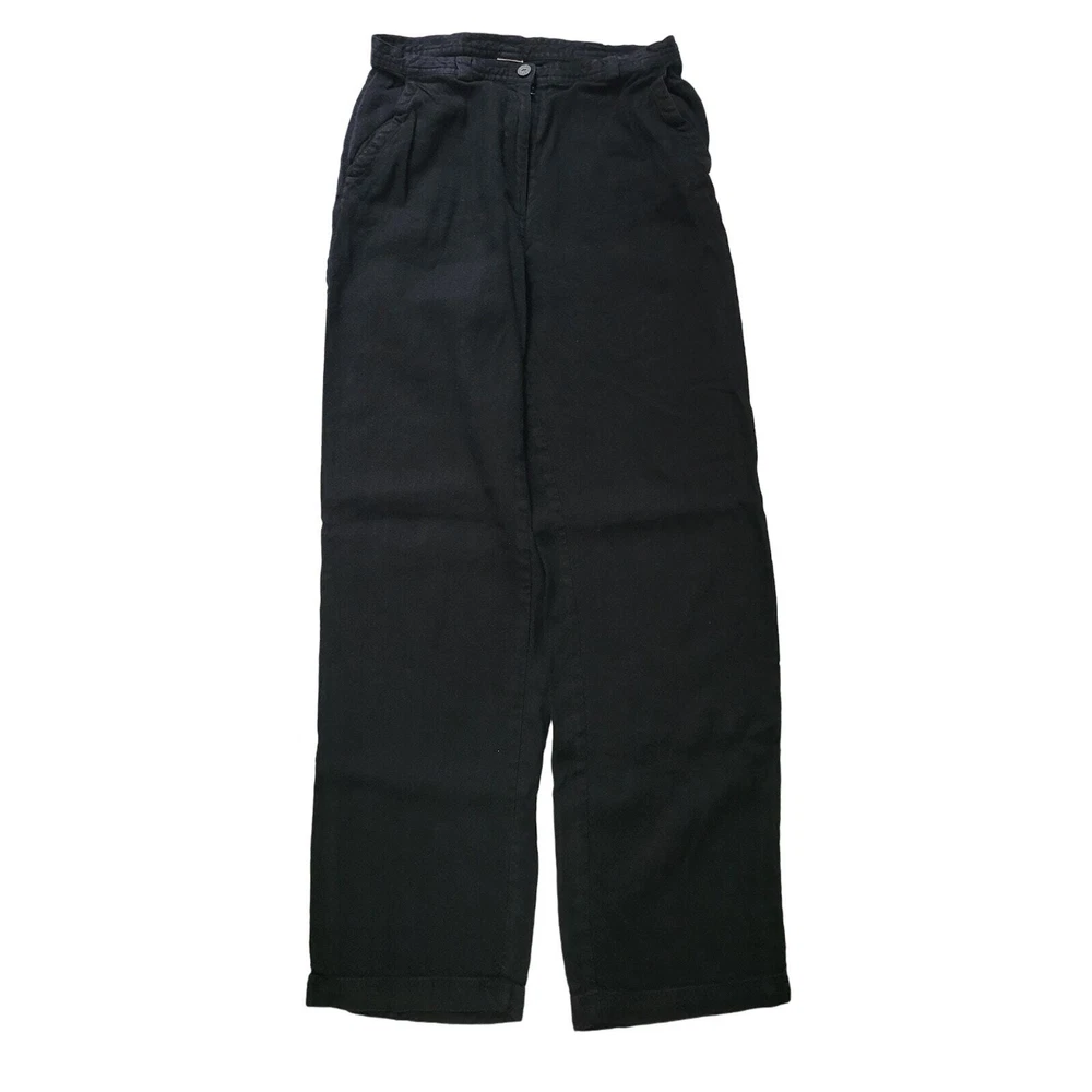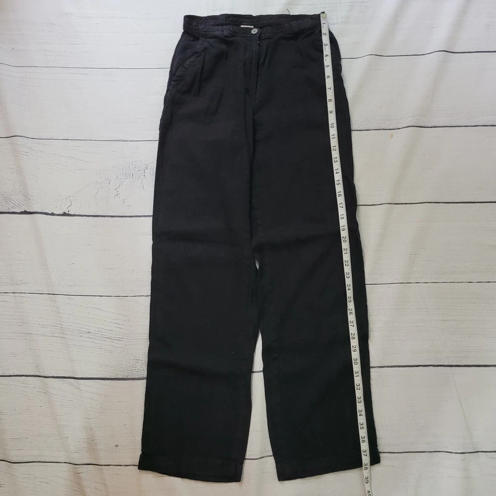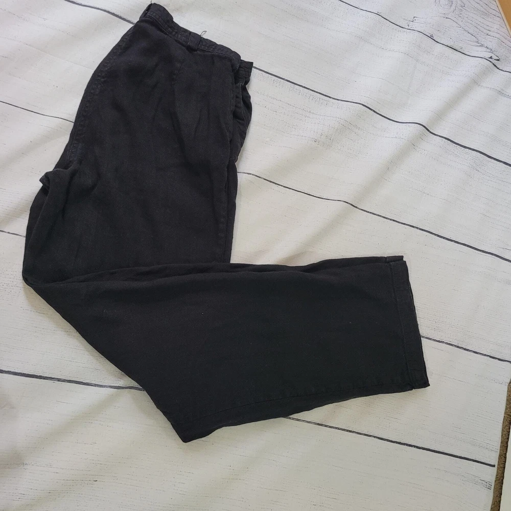 J. Jill Size 6 Black Linen Blend Straight Leg Casual Pants Summer Beach Vacation