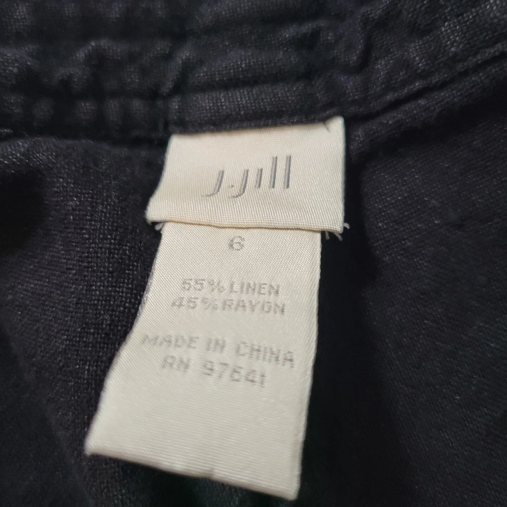 J. Jill Size 6 Black Linen Blend Straight Leg Casual Pants Summer Beach Vacation An essential item for anyone building a capsule wardrobe on a budget. Straight leg, lightweight linen blend pants to pair with anything to dress up or to dress down. Zip and button closure 2 side pockets Flat backside -Materials: 55% Linen, 45% Rayon -Excellent, pre-owned condition. No visible stains, flaws or tears. No to minimal signs of previous wear. Measurements included in photos - please inquire if more are needed. All offers considered - make one today! Approximate Measurements: Waist: 24" Rise: 10" Inseam: 28"