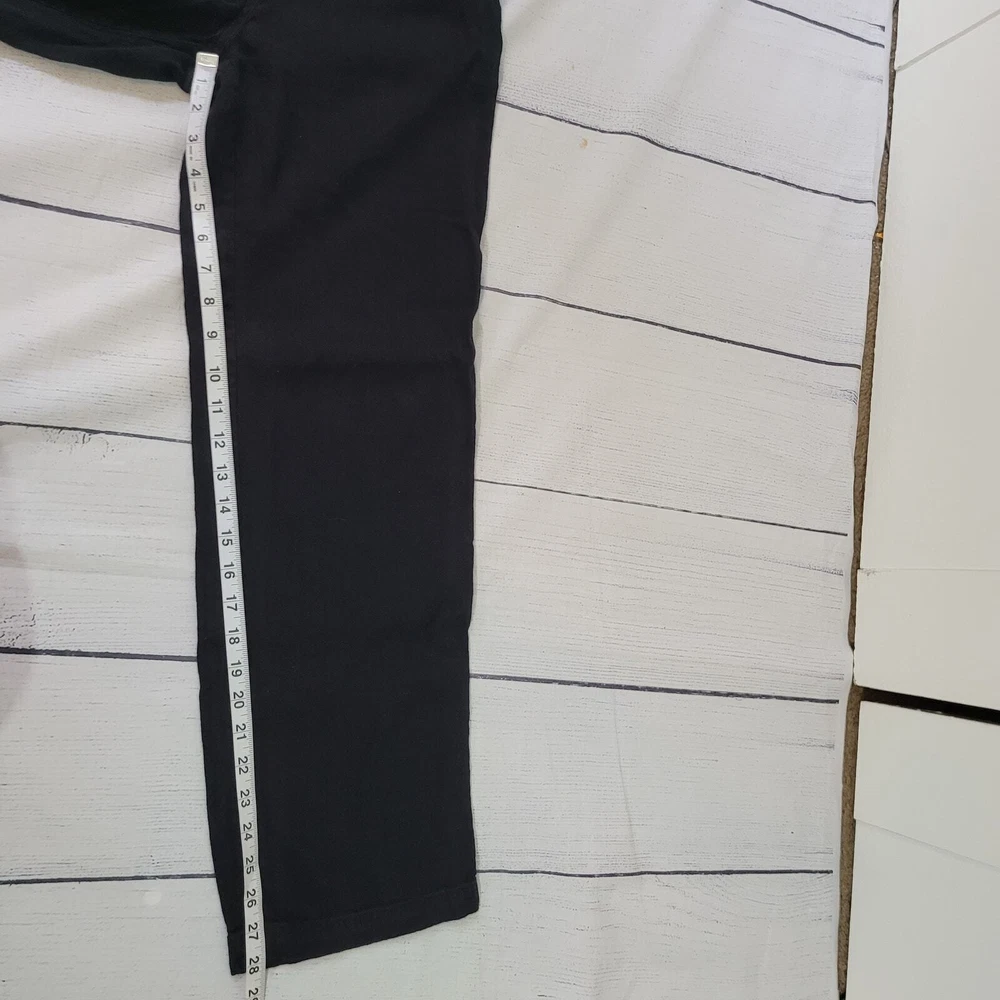 Material: Linen, Rayon Leg Style: Straight Season: Fall, Spring, Summer, Winter Department: Women Personalize: No Features: Breathable, Comfort, Lightweight, Pockets Style: Ankle Pattern: Solid Front Type: Flat Front Garment Care: Machine Washable Type: Pants Handmade: No Vintage: No Waist Size: 24 in Size: 6 Color: Black Size Type: Regular Occasion: Business, Casual Brand: J.Jill Closure: Button, Zip Fit: Regular Inseam: 28 in Rise: Mid (8.5-10.5 in)