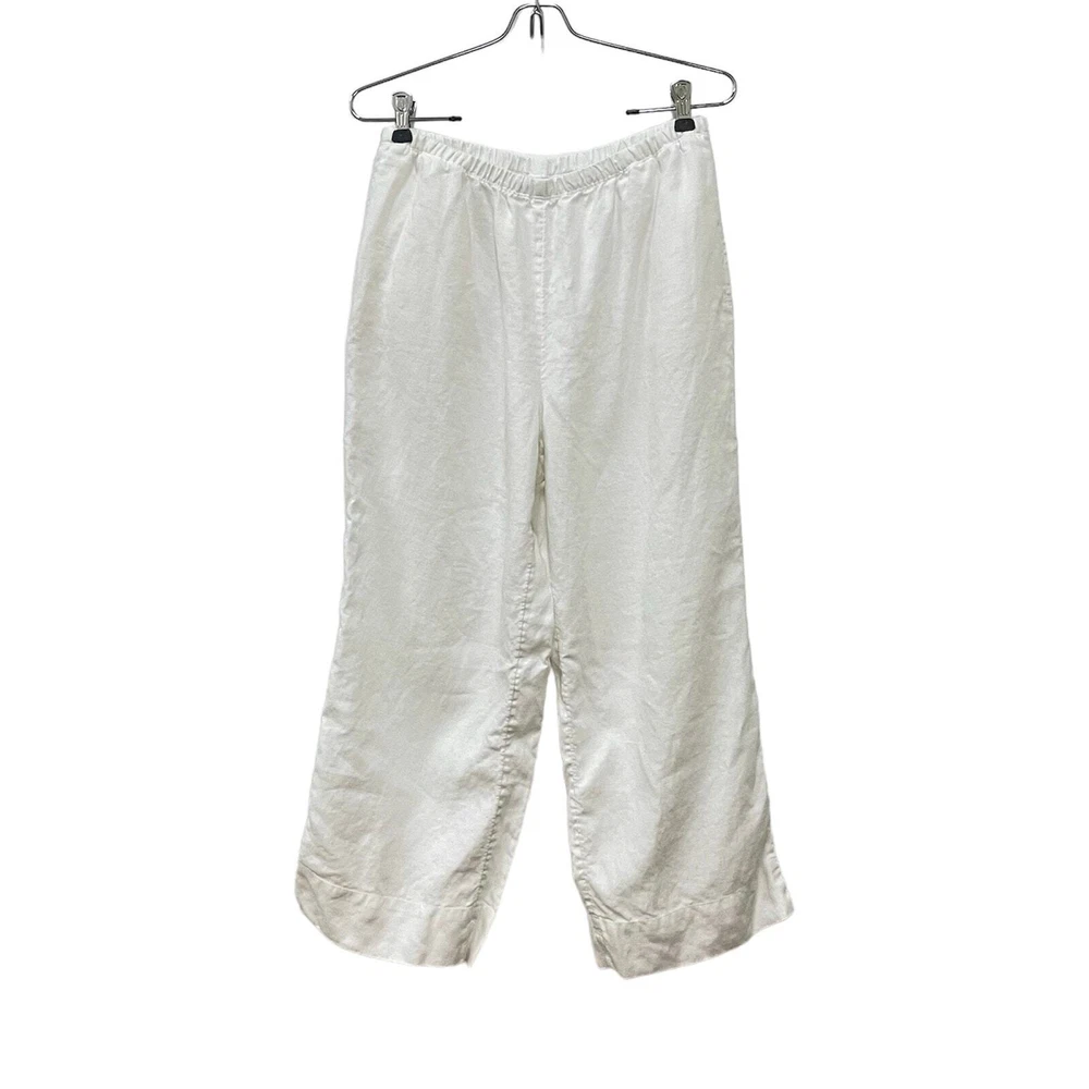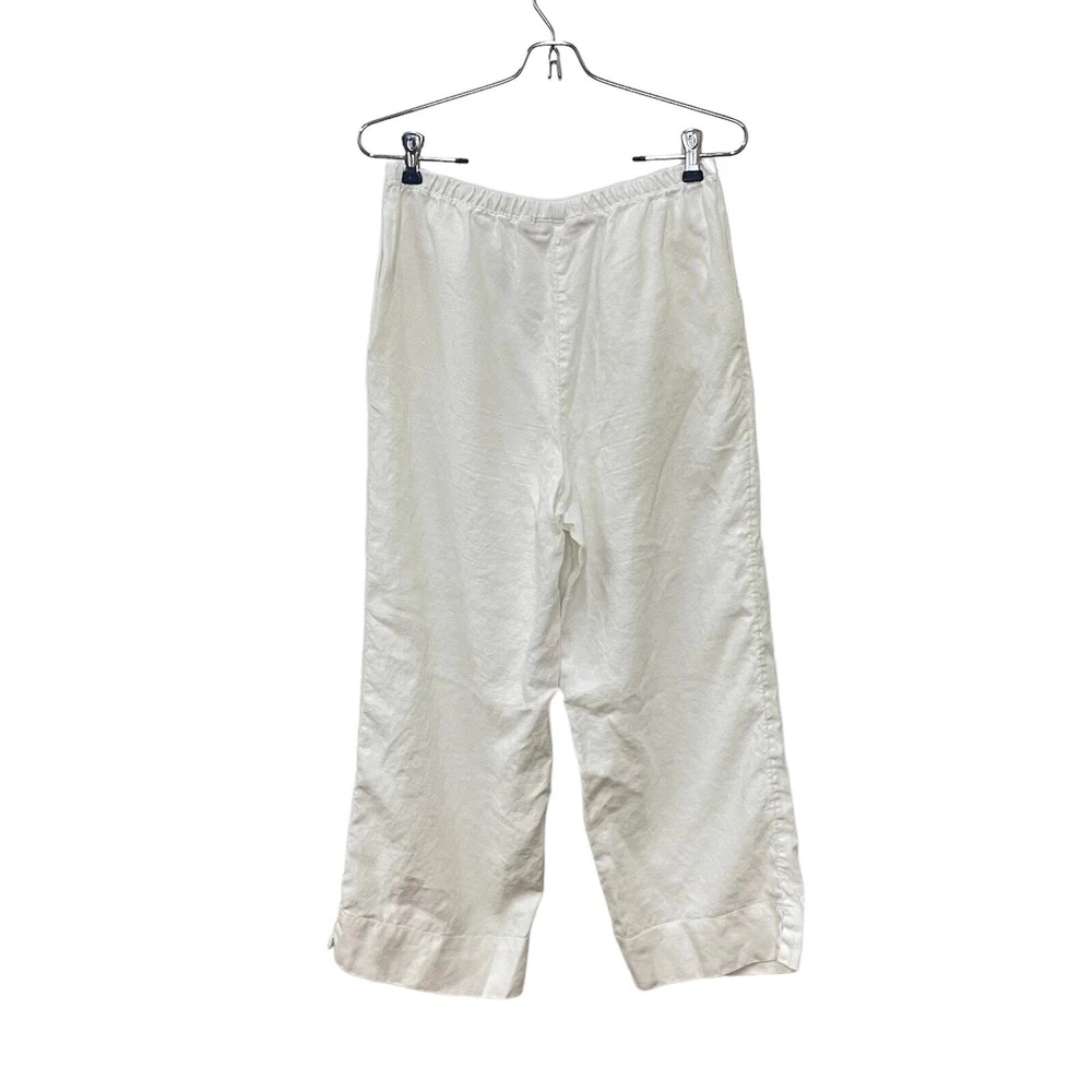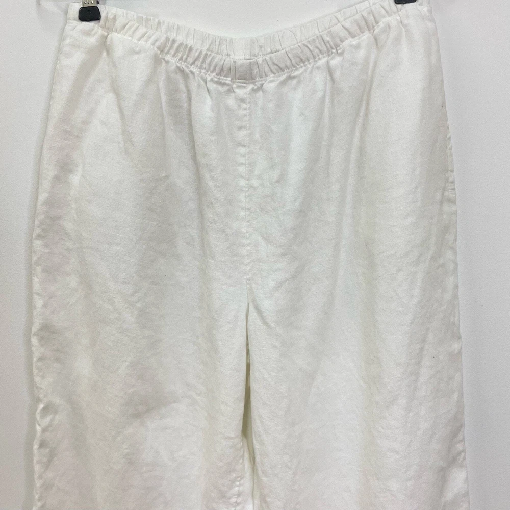 J. Jill White 100% Linen High Rise Elastic Waist Pull on Cropped Pants Familiar Fit at Waist 100% linen Semi sheer Elastic waist Pockets High rise Size small *Approximate measurements: Waist- 13.5" across Rise- 11" Inseam- 24" *Excellent preowned condition. One tiny blemish on pocket