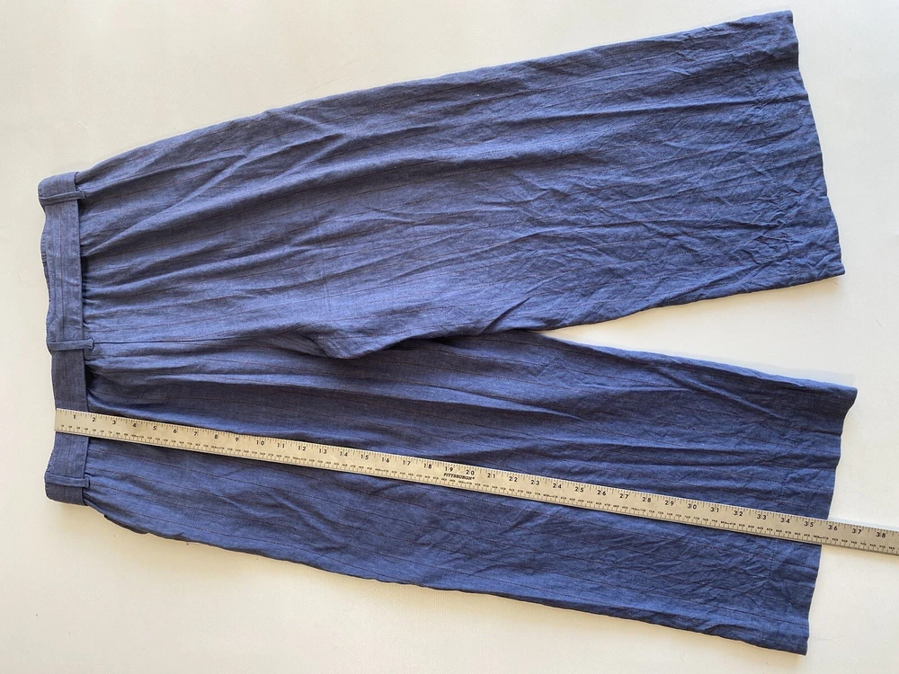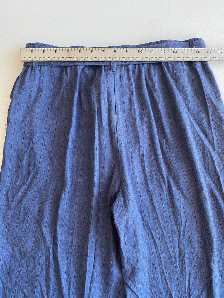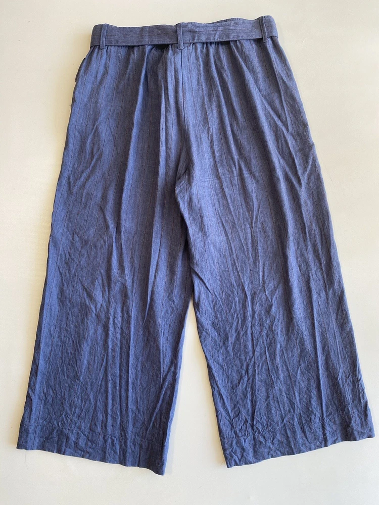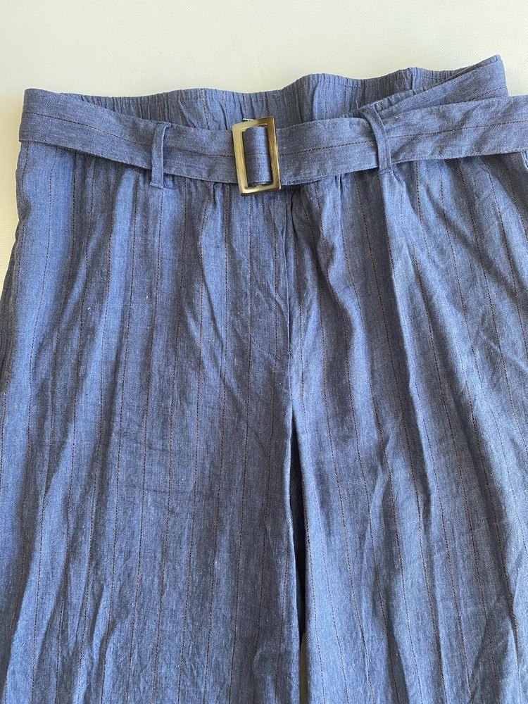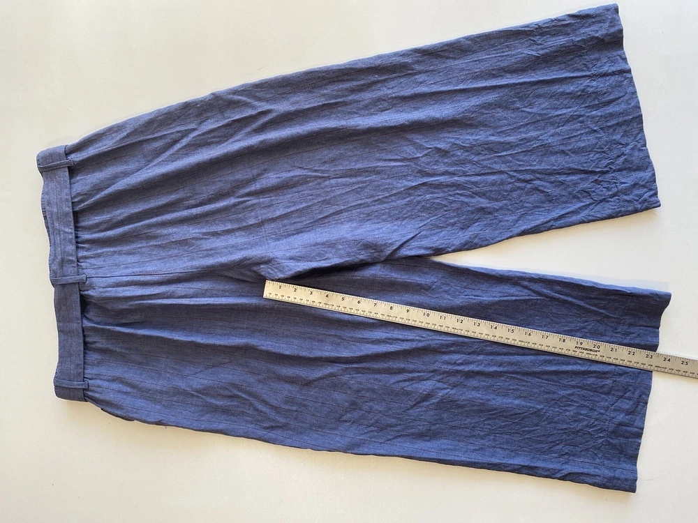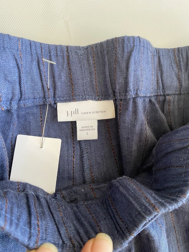 Elevate your wardrobe with these chic J. Jill Women's Linen Stretch Jenna Pants in size L. These blue striped pants feature a comfortable elastic waist and a belted cropped wide-leg design that is perfect for any occasion. The lightweight material is easy to care for and has a stretchy composition of spandex, viscose, and linen. With slash pockets and a flat front, these pants are both stylish and functional. Ideal for summer, fall, or spring, they're a perfect addition to any wardrobe. These pants are a J. Jill Jenna model and were made in Indonesia. Condition of the item is Pre-Owned in great shape! Shipped asap by USPS First Class Mail.