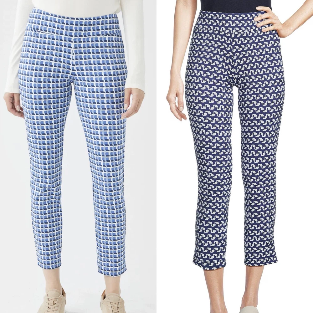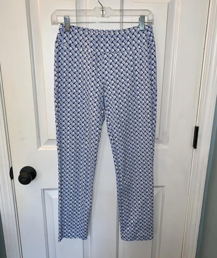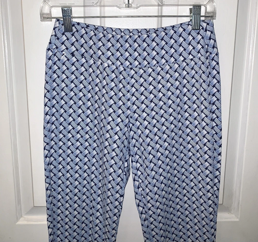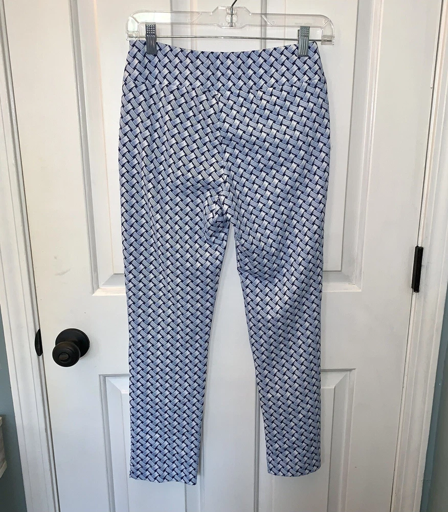 Features: Breathable, Comfort, Wide waistband Fit: Regular Closure: Pull On Color: White/Blue Type: Pants Theme: Designer Season: Spring, Summer, Fall, Winter Style: Capri Brand: J. McLaughlin Occasion: Casual, Travel, Workwear Size: XS Pattern: Geometric Vintage: No Front Type: Flat Front Department: Women Garment Care: Hand Wash Only Leg Style: Straight Material: Nylon, Spandex Size Type: Regular