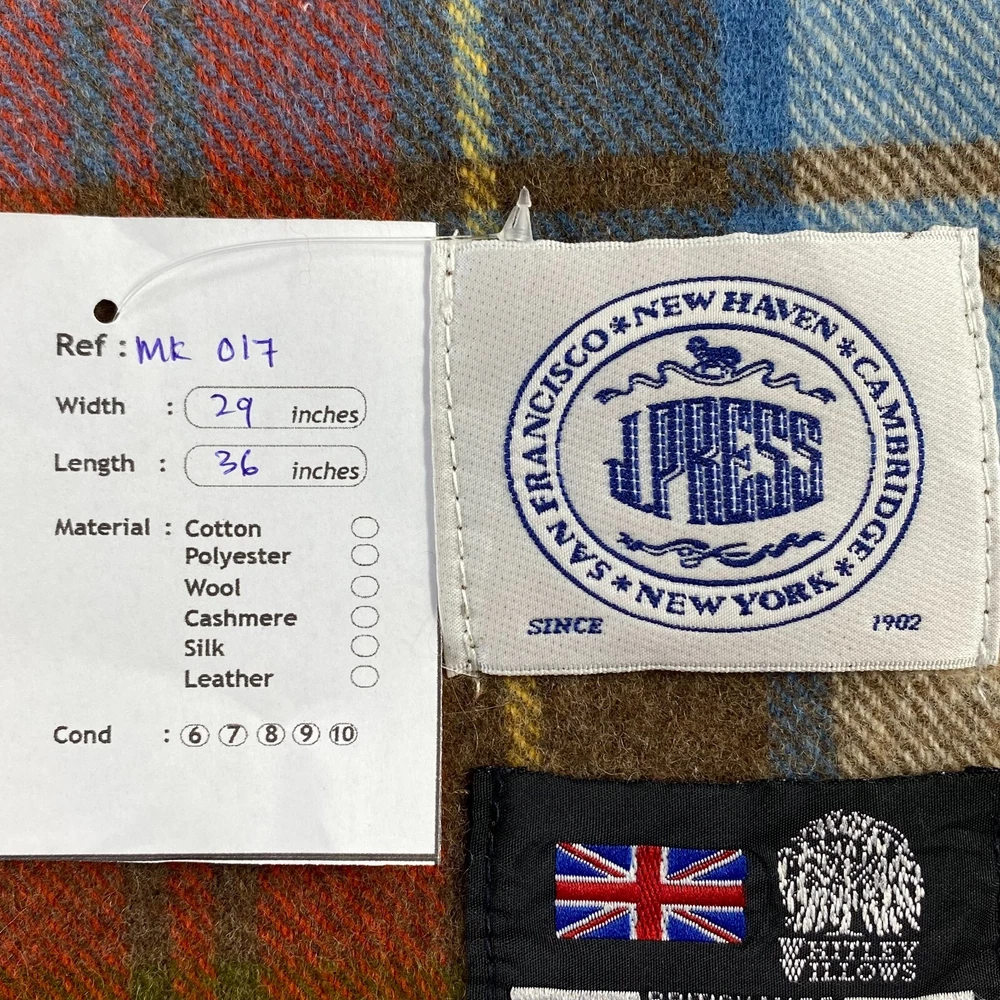 MPN: Does Not Apply Country of Origin: China Fabric Type: Tweed Materials sourced from: Japan Character Family: None Season: Fall, Spring, Summer, Winter Item Length: 36 inches Style: Rectangle Scarf Department: Unisex Garment Care: Dry Clean Only Seller Notes: “This is used item, please don't expected it to be like "new" or in "pristine" condition, Thank You.” Personalize: No Vintage: No Pattern: Plaid Features: Multifunctional Accents: Crochet, Embroidered, Fringe, Fur Trim, Logo Item Width: 29 inches Type: Scarf Material: Cashmere, Wool Theme: Christmas, Hippie, Motorcycle, Music, Punk, Retro, Rock, USA, Designer Brand: J. Press Handmade: No Character: Hippie, Skater Girl, None Color: Multicolor