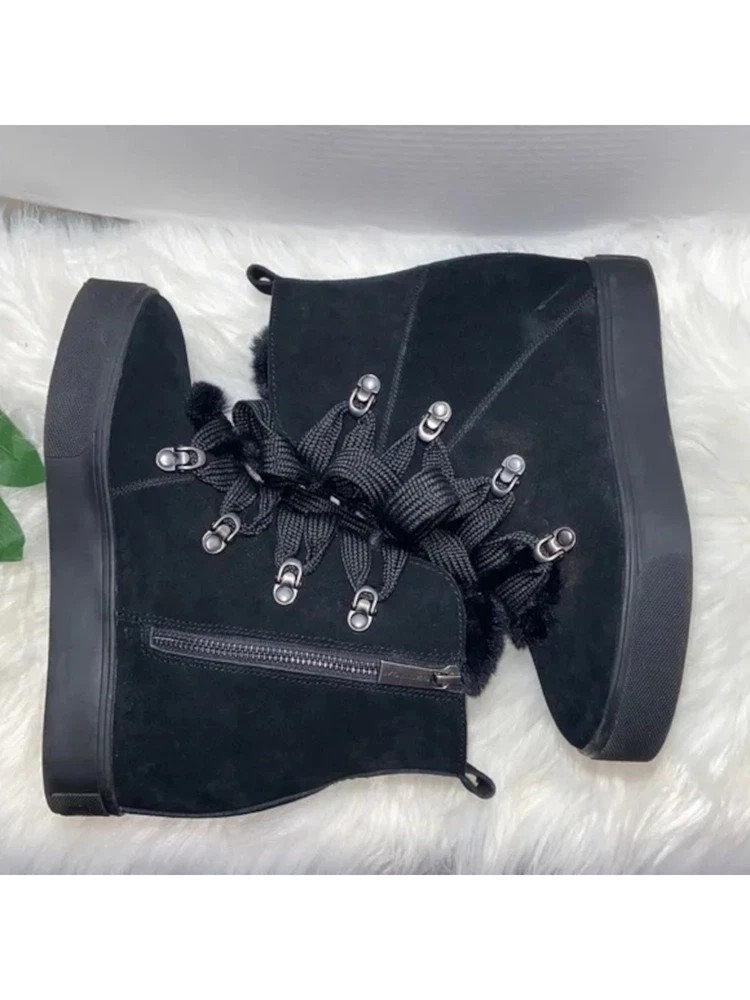 J SLIDES Womens Black 1" Platform Lace Whitney Round Toe Leather Booties 8 M
