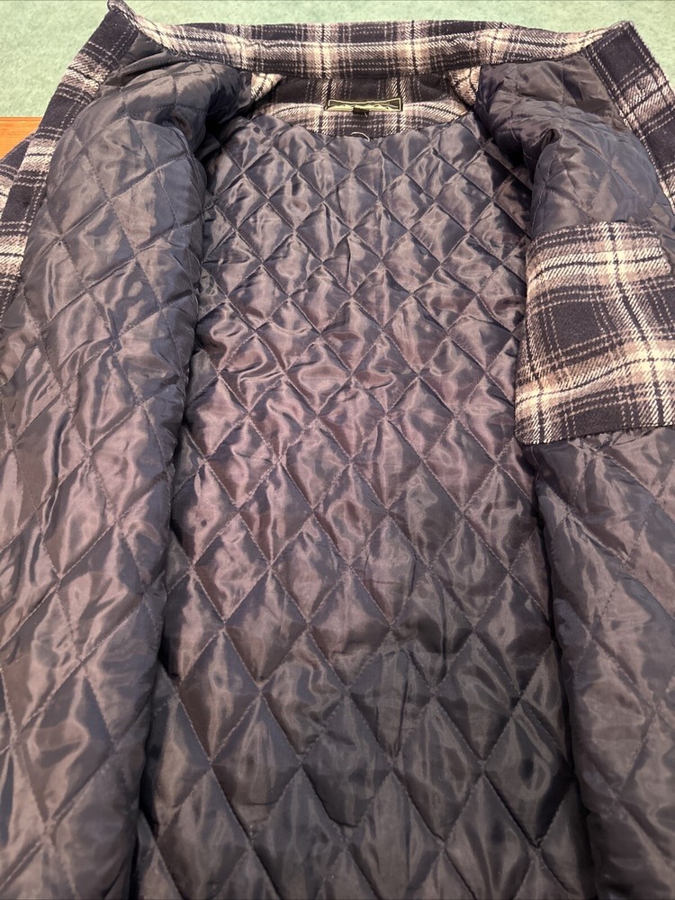 This JACHS New York jacket is a must-have for any fashion-forward man. With its blue plaid design and quilted accents, it is perfect for casual occasions in fall and winter. The jacket is made of a wool blend fabric and features a spread collar, button closure, and mid-length. The jacket is insulated with polyester and lined with polyester, making it warm and comfortable to wear. It is available in size L and can be dry cleaned for easy care. The JACHS New York jacket is a regular fit and is suitable for men who wear chest size 46 inches. Add this stylish shirt jacket to your wardrobe today!