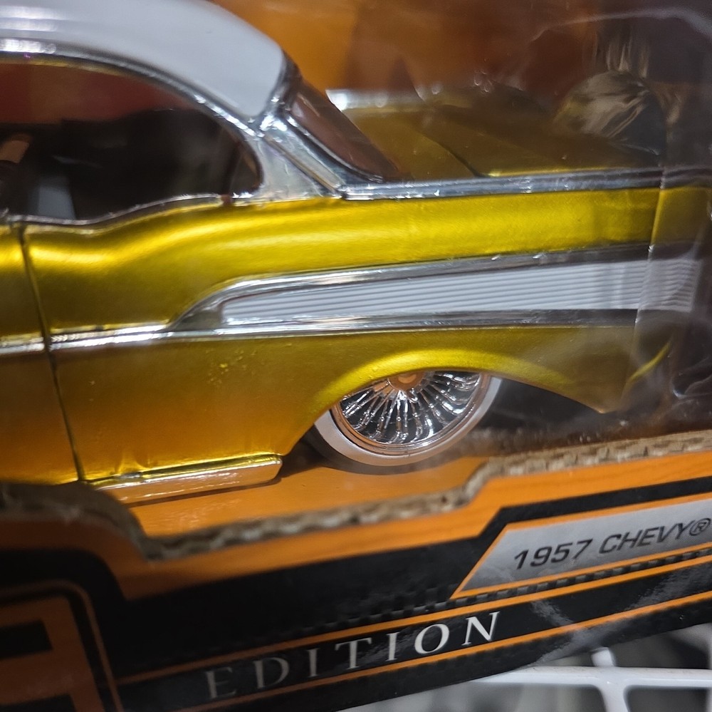 The Jada Collector's Club Limited 1957 Chevy Bel Air Coupe is a highly sought after diecast toy vehicle made by Jada Toys. This gold-colored Chevy Bel Air model is part of the Collector's Club series and features a 1:24 scale replica of the classic 1957 vehicle. This limited edition car comes in an unopened box, making it a valuable addition to any diecast car collection. With its attention to detail and exclusive features, this Chevy Bel Air Coupe is a must-have for car enthusiasts and collectors alike.