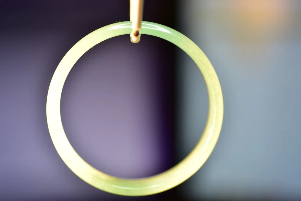 Natural-Appearance Icy Light Green Small JADEITE Jade Bangle, Simply Glowing Elegant light green Jadeite bangle smaller sized 52mm inner diameter, with a D profile and which simply glows in light. Measurements: · Inner diameter: 52.00 mm · Outer diameter: 61.42 mm · Thickness: approx. 7.5 mm · Height: 11.72mm · Weight: 24 grams Testing & observations: • Specific gravity measured at approximately 3.33 , consistent with Jadeite Jade. • Produces a ringing tone when gently suspended and tapped • Backlit inspection shows natural cloudy texture with no visible polymer webbing • Color is soft, cloudy crystalline light green typical of natural Jadeite This piece has not been lab certified and is sold as-is; however, all observations are consistent with natural Jadeite. This piece may have inclusions, other minerals, discoloration, normal vein fissures, imperfect crystals and other natural imperfections. The best description and observations of this piece are in the photographs. Please review all photos carefully and feel free to ask questions. Ships securely and insured.