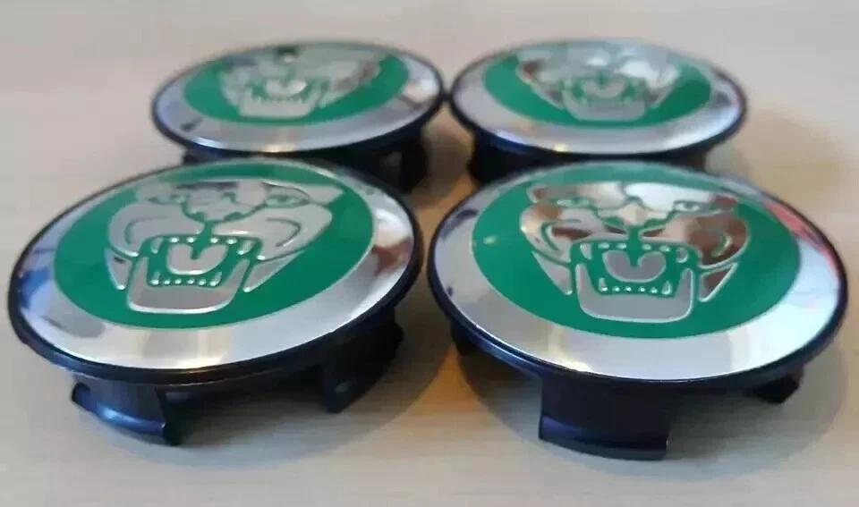 This product is a set of four wheel center caps for Jaguar vehicles. The caps have an outside diameter of 59mm and an inside diameter of 50mm. They are made of ABS and aluminum material and have an anti-fade protection finish in green color. The caps are flexible, lightweight, and car wash safe. They are easy to install and come with a 1-Month manufacturer warranty. The emblem type is Jaguar and they are suitable for placement on the rear, left, front, and right of the vehicle.
