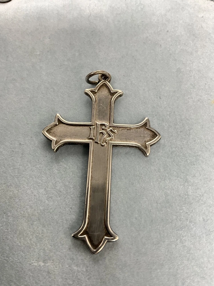 You are bidding on JAMES AVERY 925 Sterling Silver Cross Pendant 2 1/4” 11.8g Overall in excellent condition. Showing very minor signs of wear on the backside. Some silver tarnish remains on the front (can be ultrasound or fine brush cleaned). Measures approx 2 1/4” x 1”. Marked on the backside.