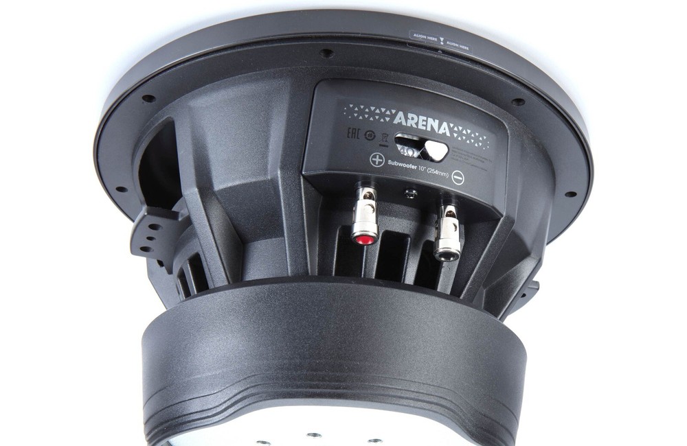 JBL Arena 10 Arena Series 10" component subwoofer with 2- or 4-ohm selectable impedance 10" component subwoofer Selectable Smart Impedance (SSI) lets you switch between 2-ohm and 4-ohm impedance composite paper concave cone and dustcap nitrile butadiene rubber surround vented cast aluminum basket dual 2.5" voice coils power handling: 700 watts RMS (2100 watts peak) frequency range: 36-1500 Hz sensitivity (2.83V/1m): 85.2 dB top-mount depth: 6.128" cutout diameter: 9.198" sealed box volume: 1.96 cubic feet ported box volume: 1.47-2.35 cubic feet grille not included This unit is manufacturer Refurbished, Unit appears in a brown box, and is guaranteed to work perfectly. Some items may have cosmetic blemishes which will not affect the units ability to operate. This Unit Comes with ALL accessories supplied by the manufacturer and includes a 90 day warranty.
