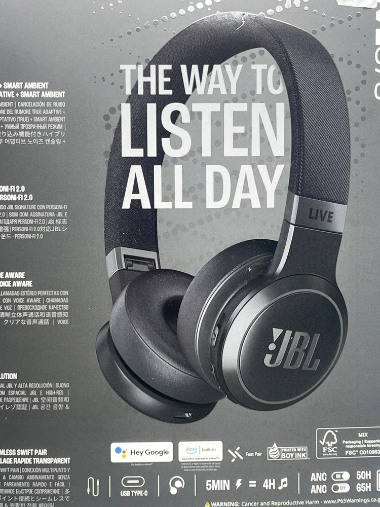 JBL by Harman Live 675NC Wireless Noise Cancelling Headphones Slightly Used - Have Normal Signs of wear - Exactly Like Pictures True Adaptive Noise Cancelling + Smart Ambient Spatial Sound Perfect Stereo Calls With Voice Aware JBL Spatial Sound & High-Res Multi-Point Connection & Seamless Swift Pair Please note box have signs of wear Contact us We can be contacted at any time through eBay messages if you have any questions, comments or product requests. We will respond to you within 24 hours and do our best to help you out! We encourage our customers to contact us with any questions or concerns! We'd like to be sure you are completely satisfied with your purchase.