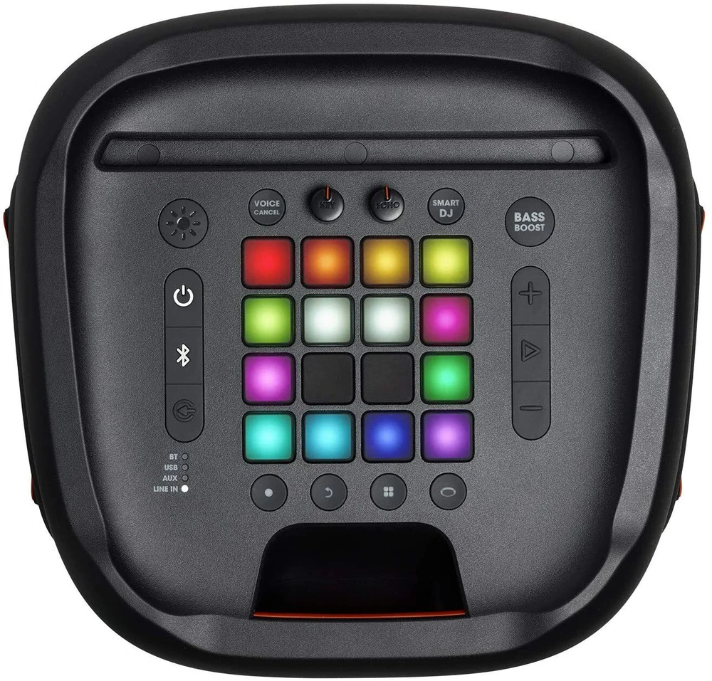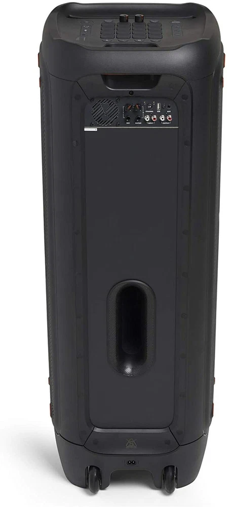 Electronic Express eBay Listing Description JBL PartyBox 1000 Portable Bluetooth Speaker with Full Panel Light Effects The JBL PartyBox 1000 is a powerful party speaker with JBL sound quality and exciting full panel light show. Just plug in your Mic or Guitar and take the stage or stream your playlist via Bluetooth or from a USB stick. The LED lit DJ and Party Band bring concert to your party! Connect two PartyBox speakers wirelessly with the TWS feature or wired from one RCA output to another RCA input. Let's get the party started! What's in the box: JBL Party Speaker Quick-Start Guide Safety Sheet AC Power Cord Air Gesture Wristband Specifications: Power Inputs: 100–240V AC Input Terminals: RCA L/R, USB port, 3.5mm Aux-in, Mic/Guitar with volume control Wireless Connectivity: Bluetooth Technology Output Terminals: RCA L/R Transducers: 1 x compression driver, 2 x 7" Mid-Range, 1 x 12" Down Firing Woofer Output Power: 1100W Frequency Response: 30Hz-20kHz (-6dB) Dimensions (WxDxH): 15.6" x 15.3" x 43.3" Weight: 76.5 lbs. Key Features: JBL Signature Sound: JBL offers unprecedented performance and an authentic audio experiences you will remember for your party! Light Shows: The full panel lighting effect creates a captivating light show to astound your crowd with a lasting visual experience. Air Gesture Wristband: Air gesture wristband brings everyone together! DJ Pad: This DJ launchpad allows you to play drums, keyboard and piano, record and loop on the fly! Mic and Guitar Inputs: Plug in your mic or guitar and take the stage. USB Playback: Pre-program your party or event with your favorite playlist from a USB thumb drive! TWS and RCA: Connect compatible speakers wirelessly via TWS (True Wireless Stereo using Bluetooth connection up to 2 party speakers) or wired via one RCA output to another. USB Charging for External Devices: A USB port on the JBL PartyBox lets you charge other USB devices right from the speaker. So you don’t need an extra charger to keep your devices powered up. Concealed Wheels: A handle and concealed wheels make it easier to transport your JBL PartyBox 1000 JBL Signature Sound JBL offers unprecedented performance and authentic audio experiences you will remember for your party! Light Shows The full panel lighting effect create a captivating light show to astound your crowd with a lasting visual experience. Air Gesture Wristband Air gesture wristband brings everyone together!
