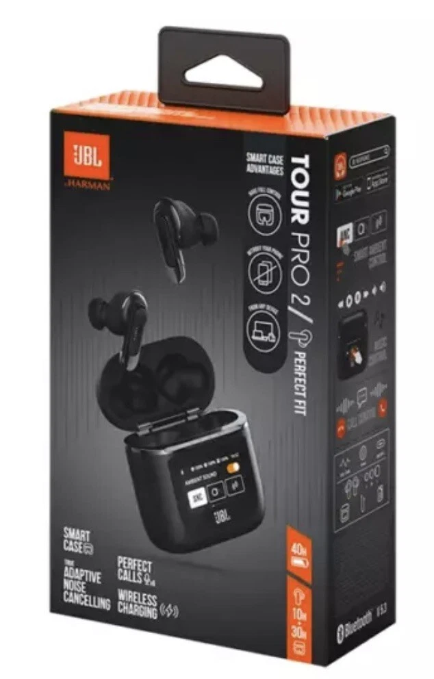 Microphone Type: Built-In Frequency Range: 20 Hz to 20 kHz Form Factor: In-Ear Only gtin13: 0050036396882 Wireless Technology: Bluetooth Number of Earpieces: Double Connectivity: Bluetooth, USB-C Brand: JBL Model: JBL Tour Pro 2 Color: Black Type: Earbud (In Ear) Features: Wireless, Replaceable Ear Tips, Volume Limitation, Waterproof, Noise Isolation, Ambient Sound Mode, Built-In On/Off Switch, Stereo, Touch Control, Active Noise Cancellation, Water-Resistant, Call functions, Playback Controls, Microphone Mute Button, Volume Control, Rechargeable Battery, Noise Cancellation, Sweat-Proof, Built-in Microphone UPC: 0050036396882 MPN: JBLTOURPRO2BLKAM Impedance: 16 ohm
